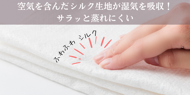 中空繊維であるシルクと、空気を含んだ製法によって、湿気がこもりにくく蒸れにくいので、快適な着け心地です。