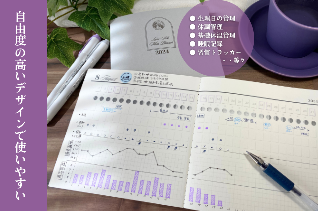 体調管理のヒントとして、月を意識しやすいようにルナシルクオリジナルのデザインで作成しました!
