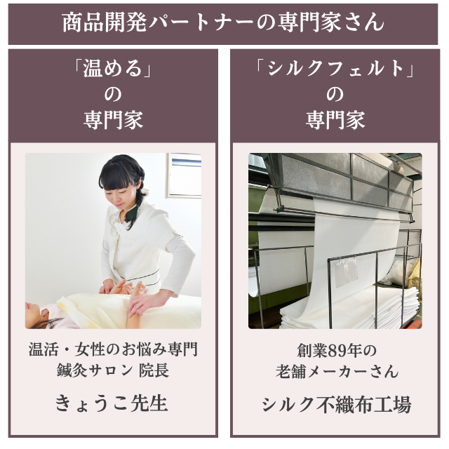 『シルク100%フェルトのおりものシート』は、女性の身体の専門家さんと、優れた技術を持った国内の工場さんに支えられた製品です。