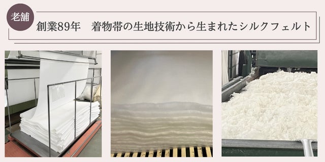 日本で長年培われた独自の技術を活かして、ふんわりとお肌に優しいのに機能的な、シルクのフェルト生地が誕生しました。
