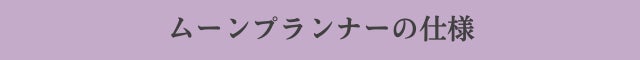 月の満ち欠けと、新月・満月の日が分かるマンスリータイプのスケジュール帳です。女性の身体は、月の満ち欠けと深く関わっていると言われています。