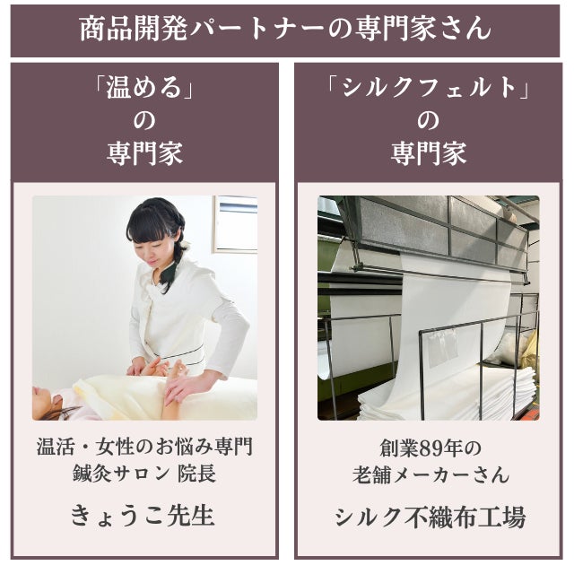 「手軽に毎日続けられる、温めと肌への優しさは妥協しない!」ことを目標に、シルクだけを使用したおりものシートを開発しました。
