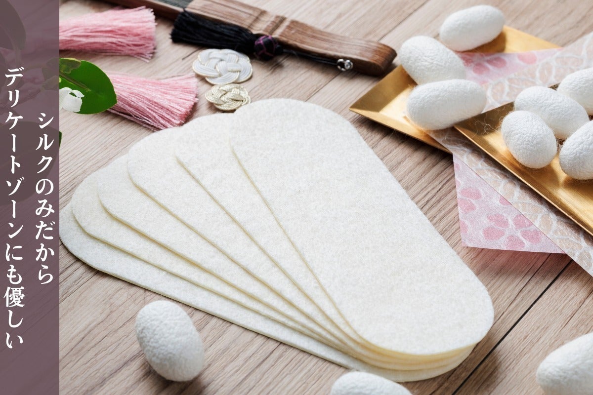 『シルク100%フェルトのおりものシート』は、化学繊維を一切使用せず、シルクのみで作られたおりものシートです。