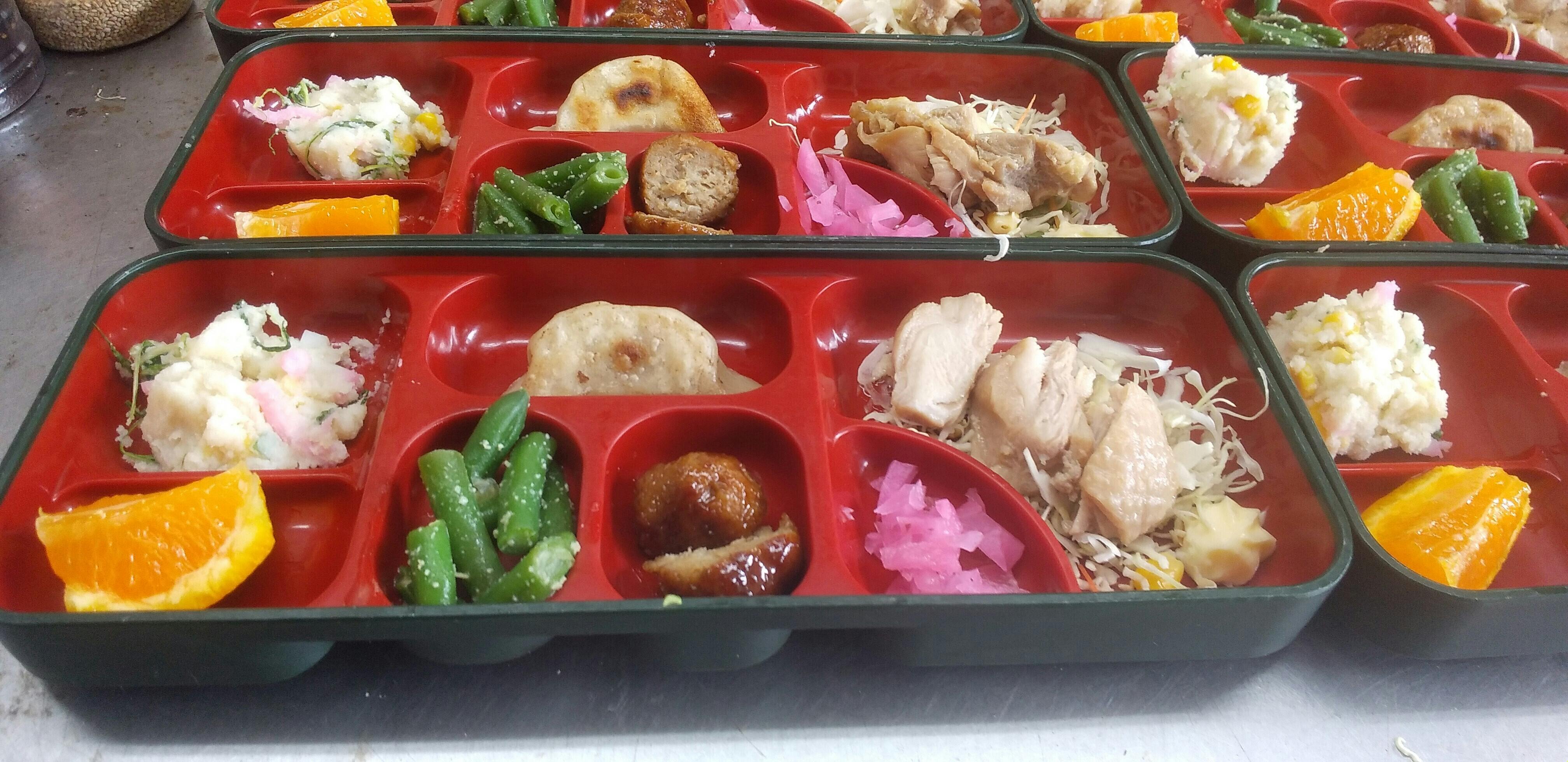 老人施設やグループホームデイサービスの利用者様に宅配が支流の冷凍じゃない出来たてのお弁当を食べて貰いたいです施設スタッフに聞いたら冷凍弁当が届いたら温めて出すみたいで野菜のいろがとんでたりかたかったりで一人一人に対応してなくて大変らしいです地元の当店なら作りたてで対応常食 一口 刻みます。