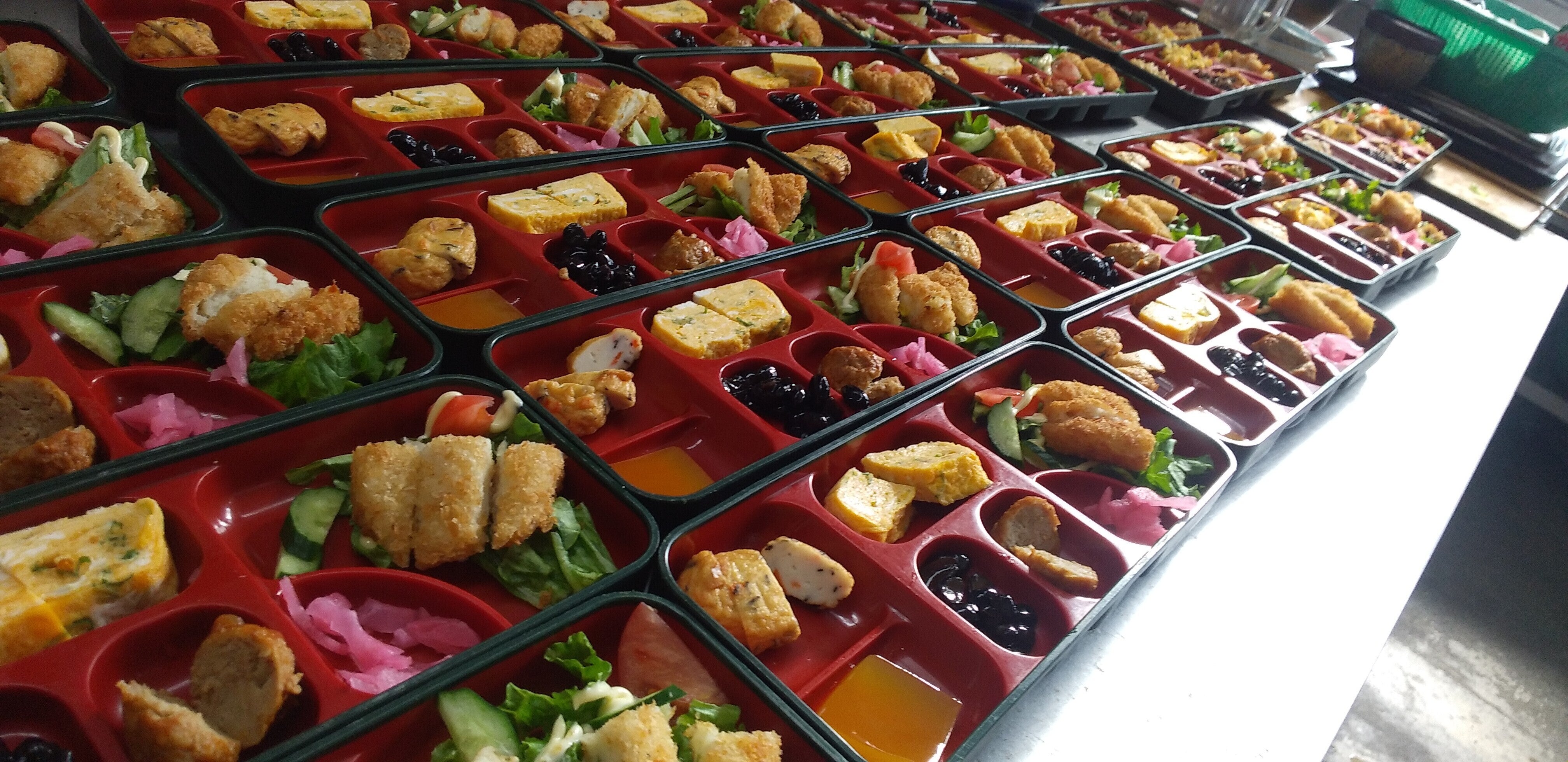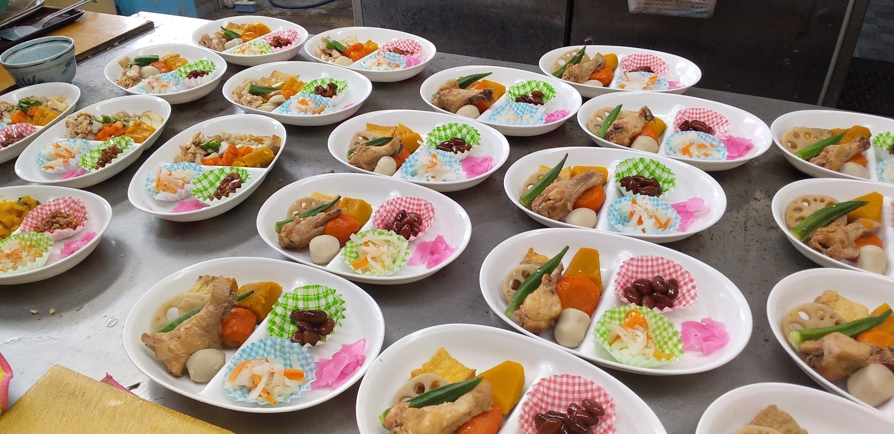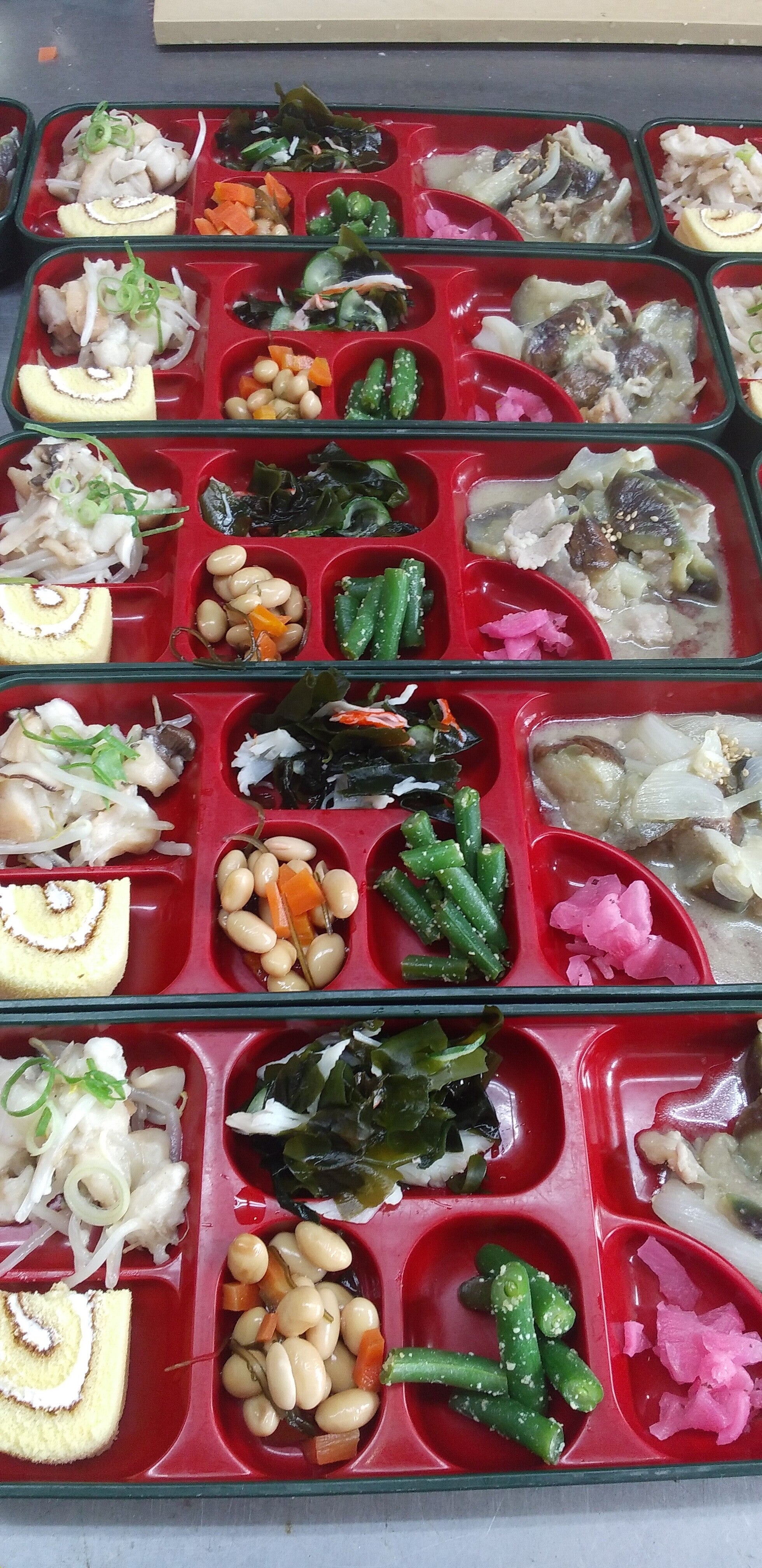 おはようございますお弁当はねぎ入りたまご焼き 肉だんごハッシュどビーフソース お野菜コロッケとご年配の方人気煮豆 すり身天揚げ みかんゼリー他ですよろしくお願い致します