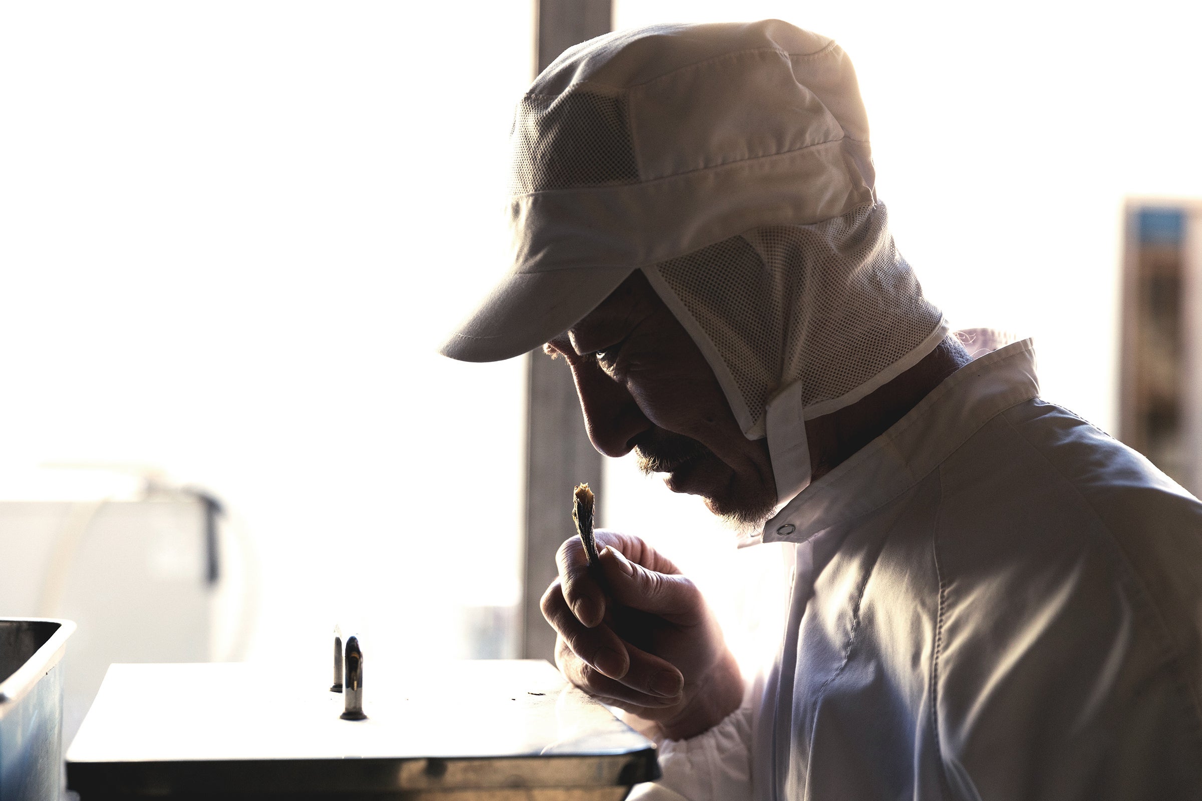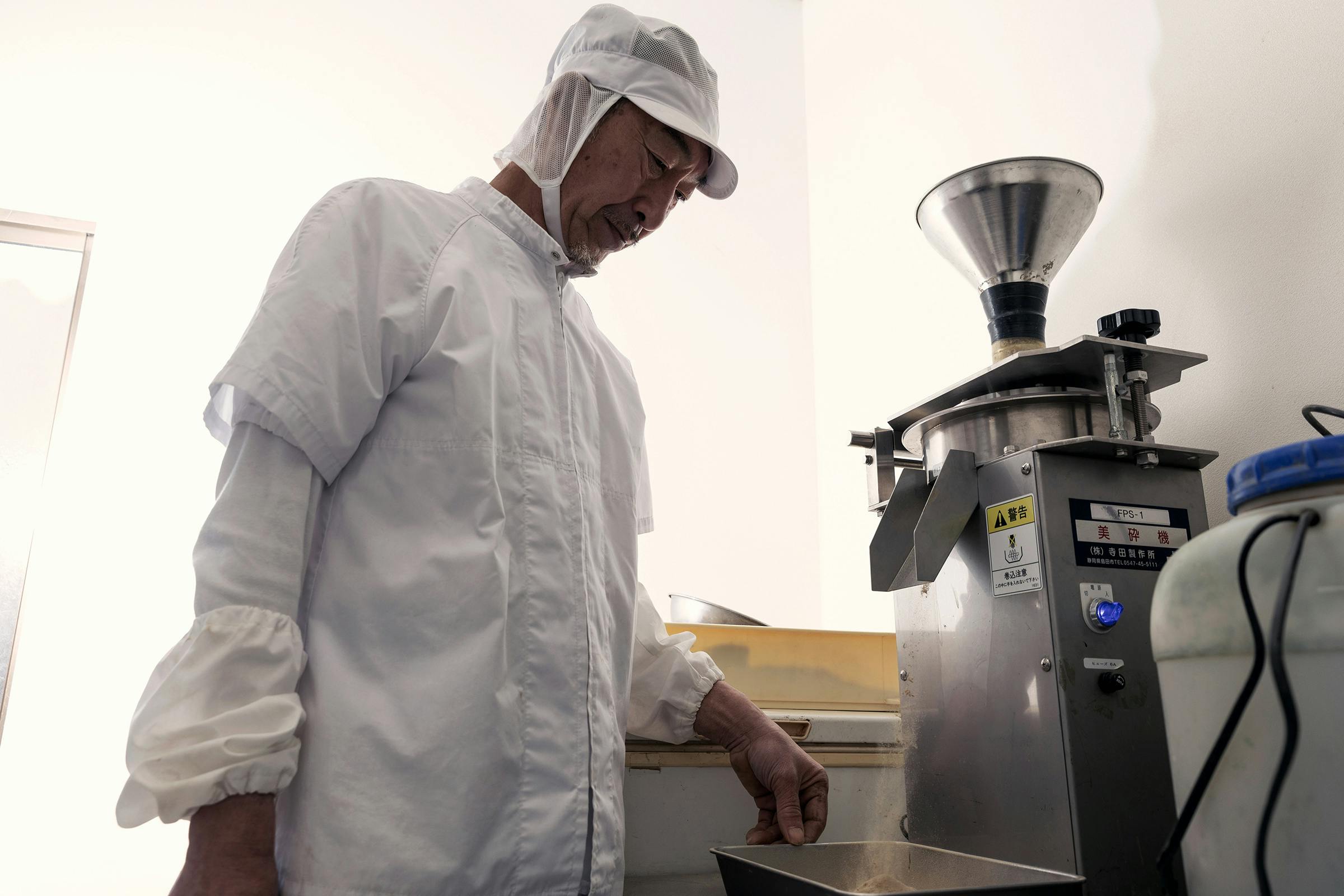 ※おだし職人 野中誠さん。使用する原材料の香りや水分は、毎日丁寧に確認します。