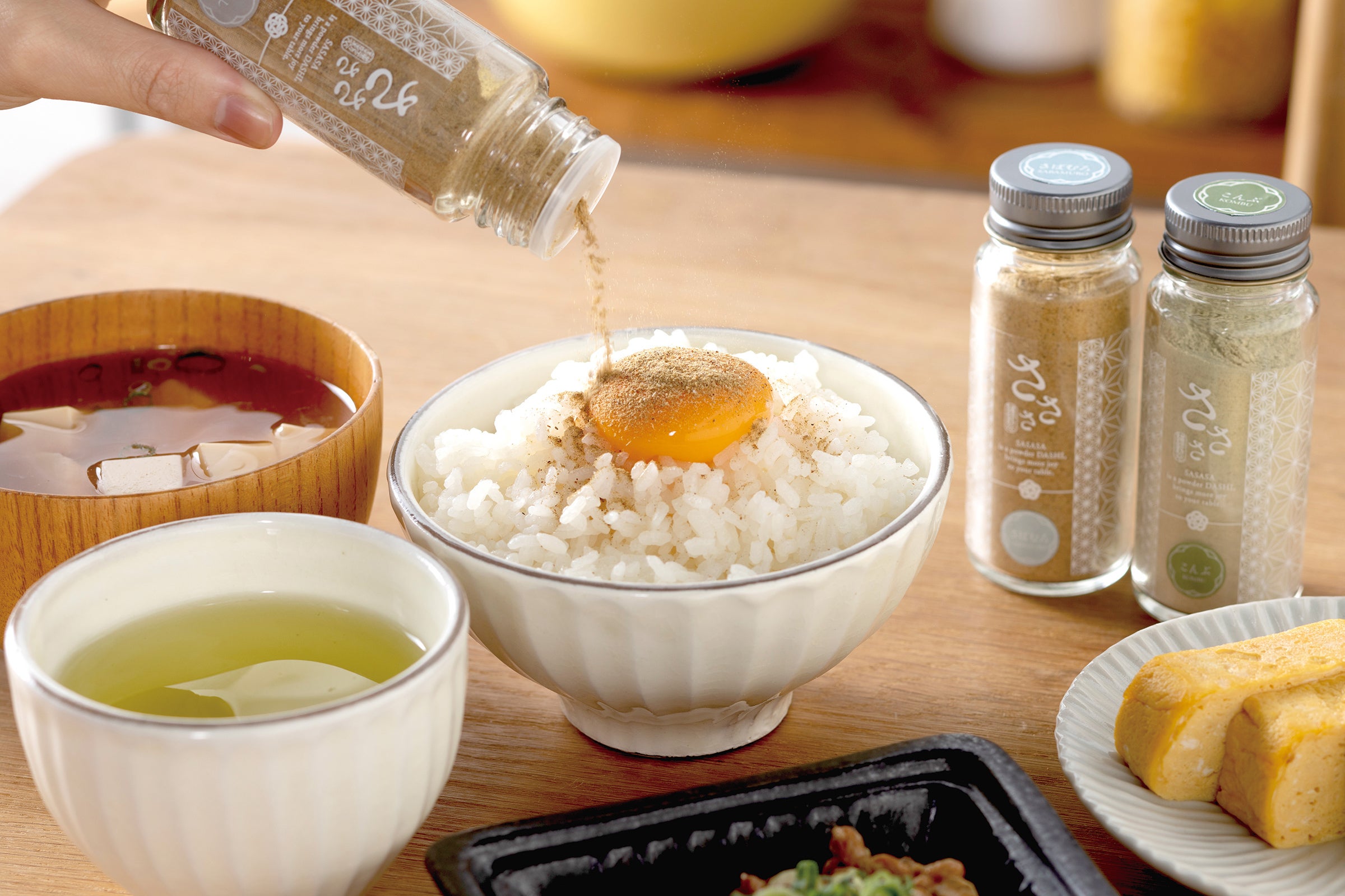 蒸し野菜や卵かけご飯、シンプルなオイルパスタなどシンプルな料理に「さささ」は合います。また、インスタントのおみそ汁等にかけると香りがグッと高まって、本格的な風味になります。これだけでミネラルやカルシウムがアップしますよ。