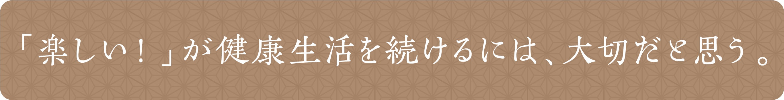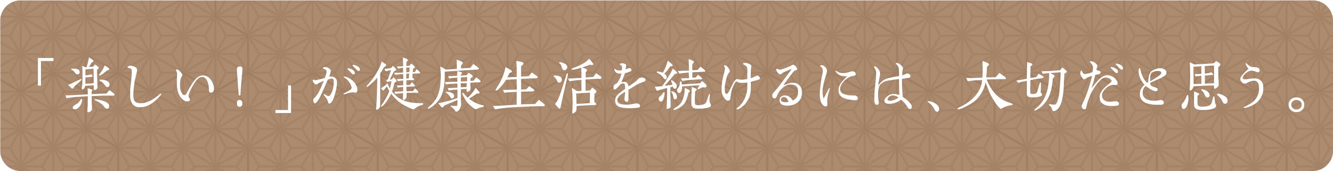 しかし私は妻と一緒に健康的な生活をはじめてみると、新しい発見や今まで知らなかった知識など、ワクワクする楽しいことに多く触れることができました。このような「楽しさ」があれば、健康的な生活を積極的に続ける人が増えるはず!
