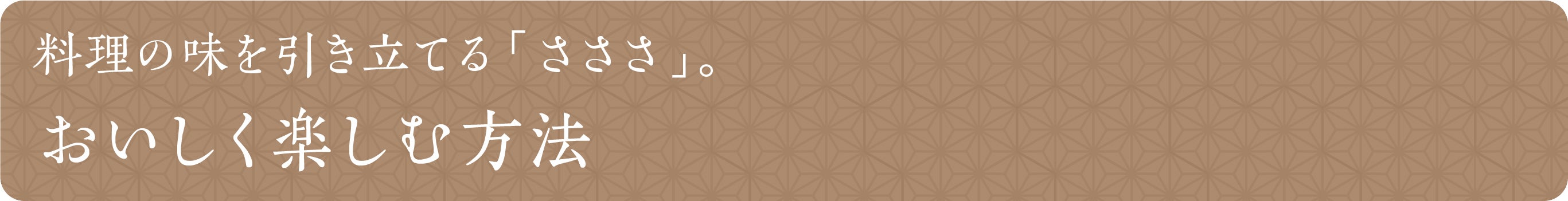 ここで改めて「さささ」の楽しみ方を紹介します。さらさらとし口あたりと、口のなかで、すっと溶けていく繊細さ。そして上品な味わいと、豊かな香りで、料理の味をひきたてる。「さささ」はそんなおだしです。