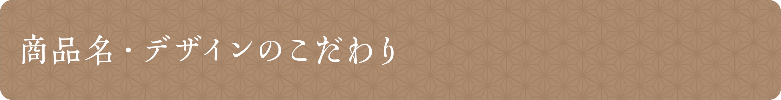 デザインは麻の葉と六角形の亀甲紋様で構成しました。麻は生命力が強く「健康」「成長」を意味する文様で、亀甲文様は「長寿」を意味する文様です。この2つが合わさる麻の葉文様を用いることで健康と長寿への願いを込めています。