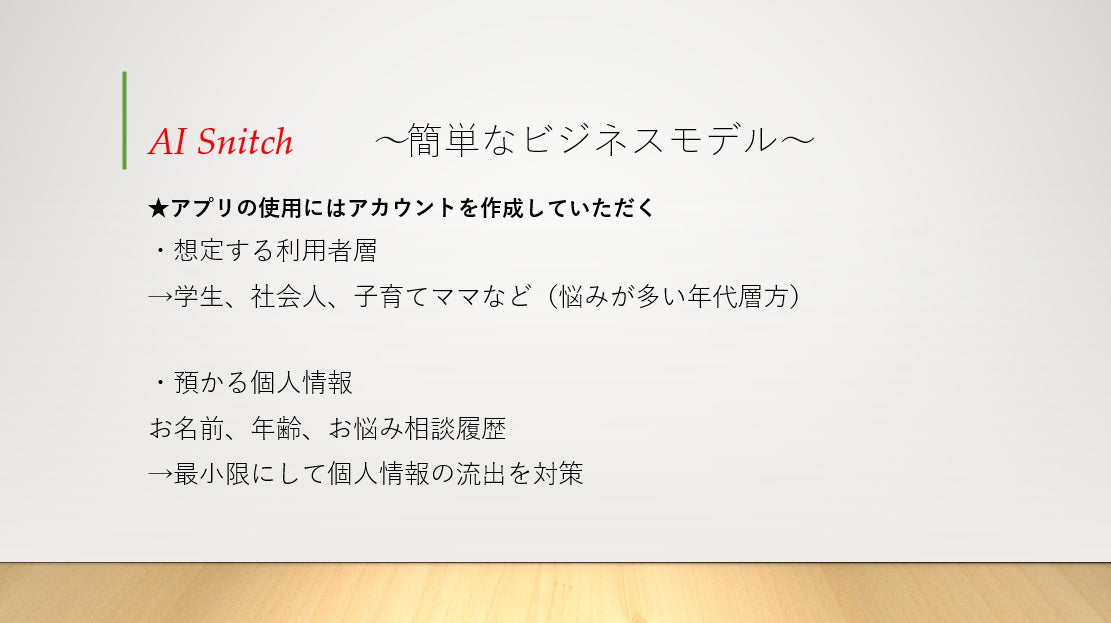 今回、私が企画した「AI Snitch」について以下で説明致します。