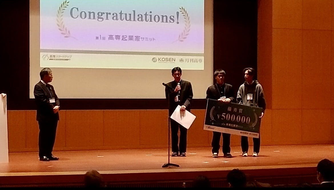 ご報告が大変遅くなりましたが、3月11日に東京で行われた「第1回高専起業家サミット」で優秀賞を受賞し、賞金50万円を獲得しました!