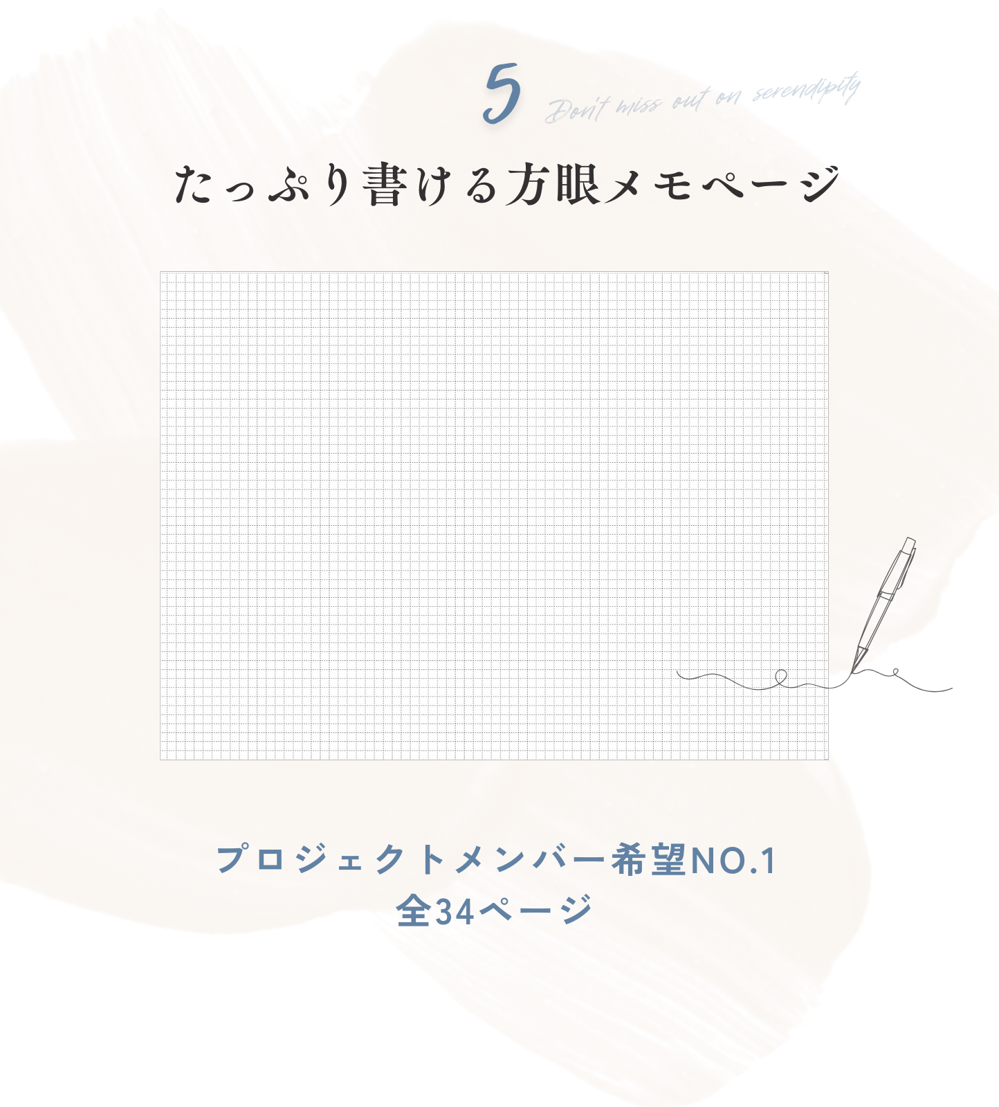 ▲投資の学びやちょっとした銘柄メモ、心に残った格言や見かけた占いの言葉etc..やっぱり私たちはメモがしたい!手帳作りメンバー内でも圧倒的希望No.1は使いやすいメモページ!自由度の高い方眼仕様・全34ページ