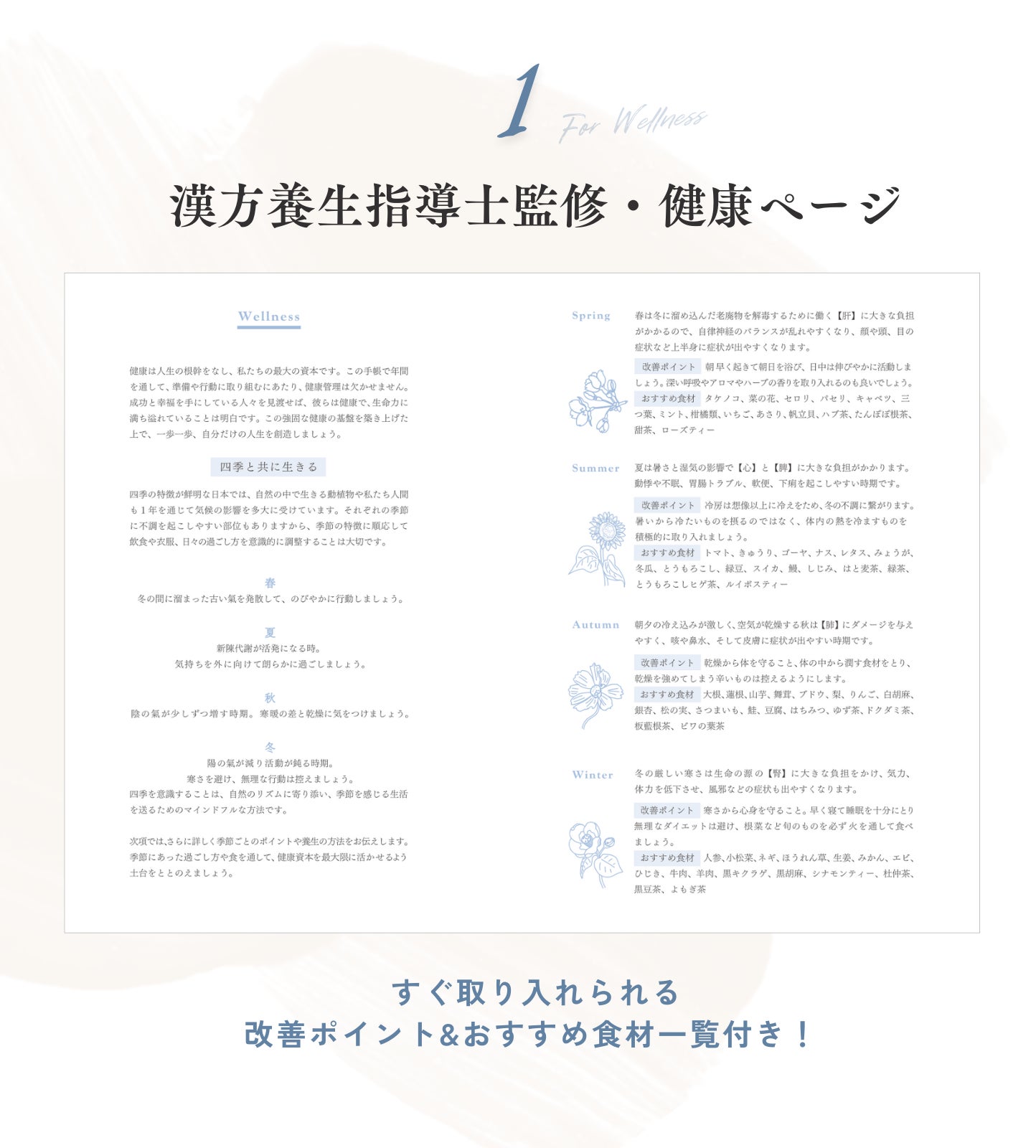 この手帳が、あなたが日々の生活の中で、真に豊かになるための活動を意識的に取り組むための人生のガイドとなってほしい。そんな想いを込めて企画・製作いたしました。