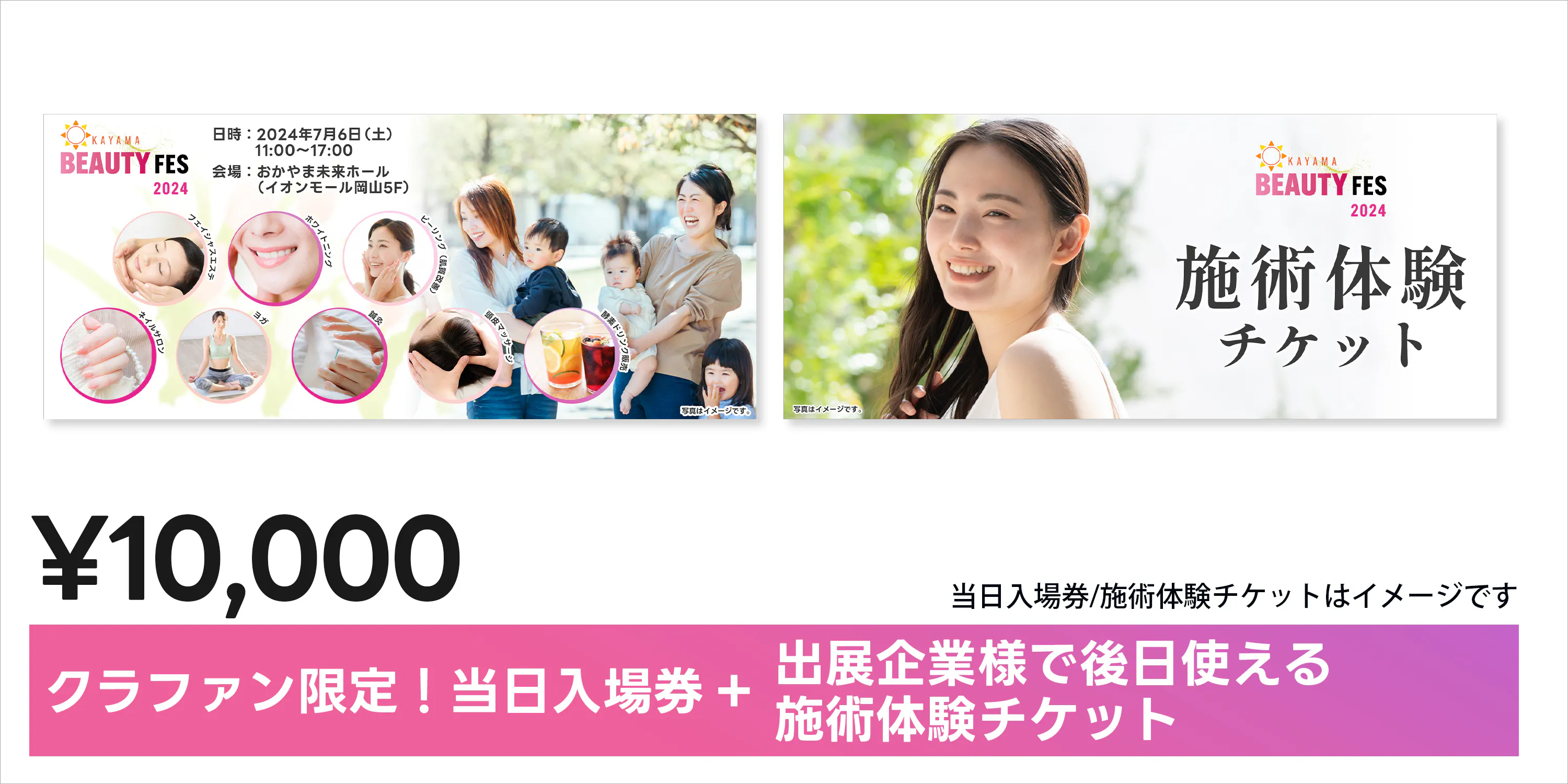 2024/03/26 20:13初日からたくさんの方にご支援を頂きました。本当にありがとうございます!岡山の美容と健康業界を盛り上げるために、魅力あふれるイベントにして参ります!今日も出展企業様との打ち合わせがあり、魅力あふれるコンテンツが決まりました!今決まっているコンテンツとしては「ハンドマッサージ体験」「フェイシャルエステ体験」「ヒーリングヨガ」「美容鍼灸体験」「眉メイク」「腸もみ体験」などなど!まだまだコンテンツ打合せ中なので、決定次第随時お伝えさせて頂きます!その他、各ブース以外にも「数万円相当の賞品が当たる抽選会」「大人気コスメ試供品プレゼント」「大人気美容機材が特別価格で購入できる!」など、一日中楽しんでいただけるコンテンツが盛り沢山です!ぜひ!皆様のご来場をお待ちしております! もっと見るついに!クラファンスタートしました!〜5月末まで〜