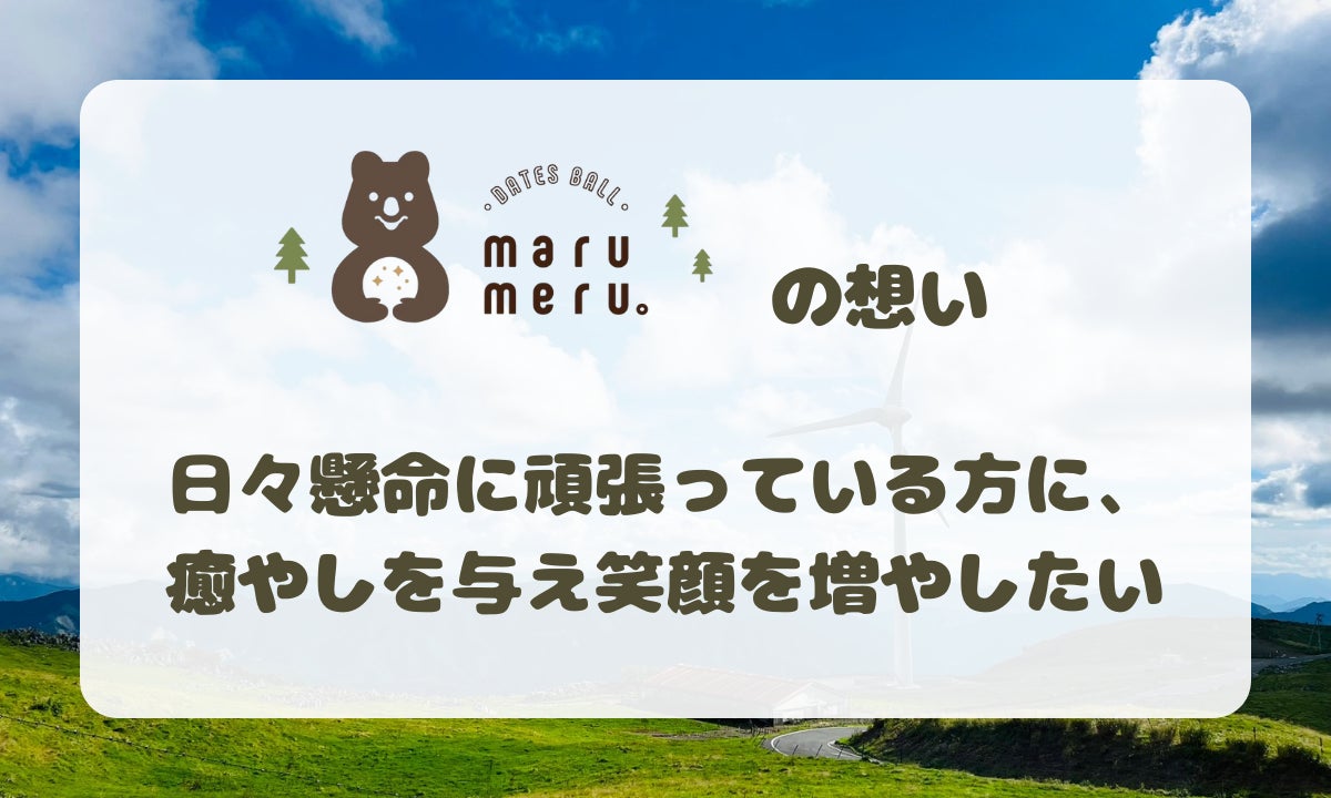マルメル。(marumeru。)はデーツボールを通して、日々頑張っている人の癒やしとなり、気持ちが前向きになるような存在になります!