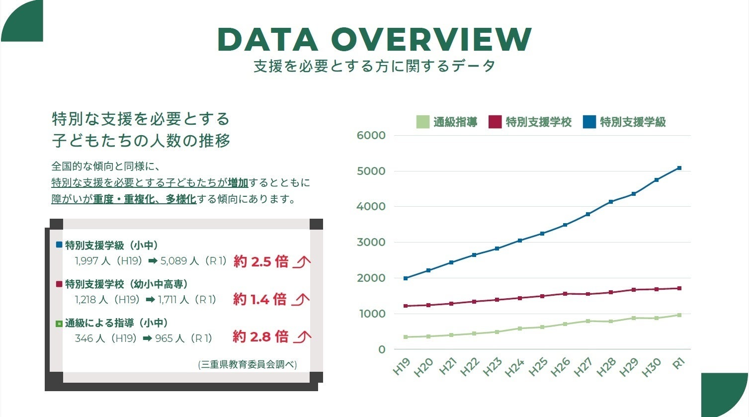 全国的に特別な支援を必要とする子どもたちが増加するとともに、障害が重度・重複化、多様化する傾向にあります。