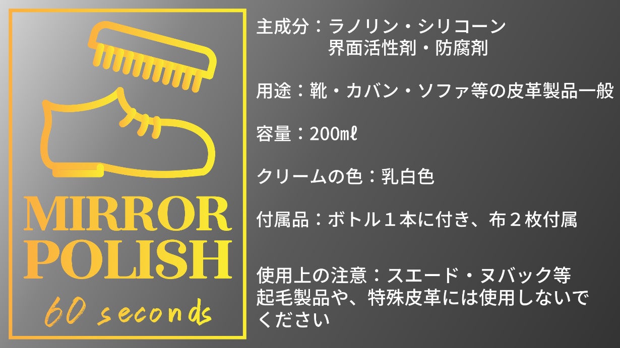 「ミラーポリッシュ」は新時代のクリームです。このようなさまざまなメリットがございます。