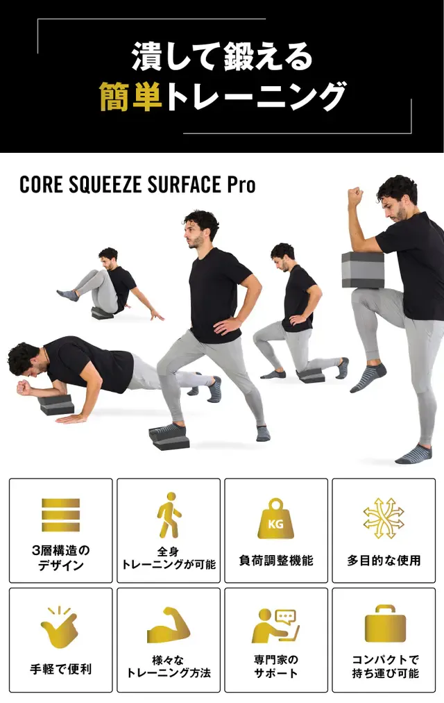 「コアスクイーズサーフェスプロ」は全身のトレーニングに対応しています。