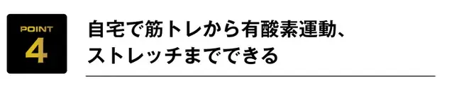 筋トレ、有酸素運動、ストレッチといった幅広いトレーニングが自宅で可能になります。