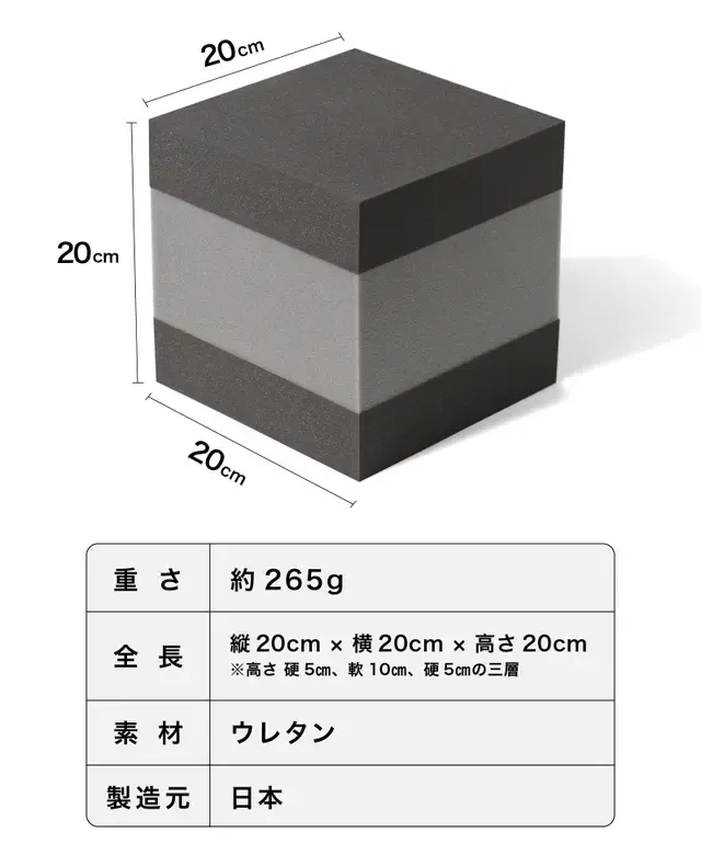 硬い、柔らかい、硬いの順にウレタンが3層構造になっており、潰すだけで全身の筋肉を効果的に鍛えることができます。
