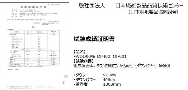 ◎アップサイクルホワイトダウン90%ダウンパワー400dp以上を選別