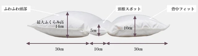 そのままの状態でご使用時は真ん中の頸椎スポットに首元を合わせてご使用頂くと背中、肩、首、頭と体圧分散されフラットな寝姿勢になります。冬は背中から温めてくれる優れものです。