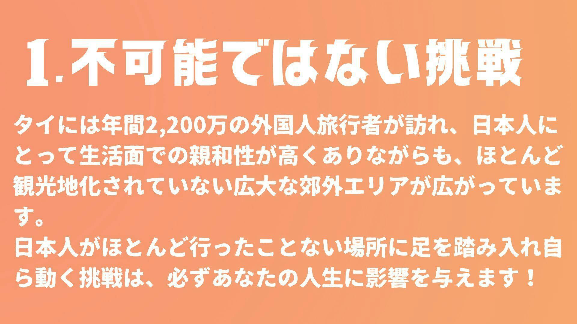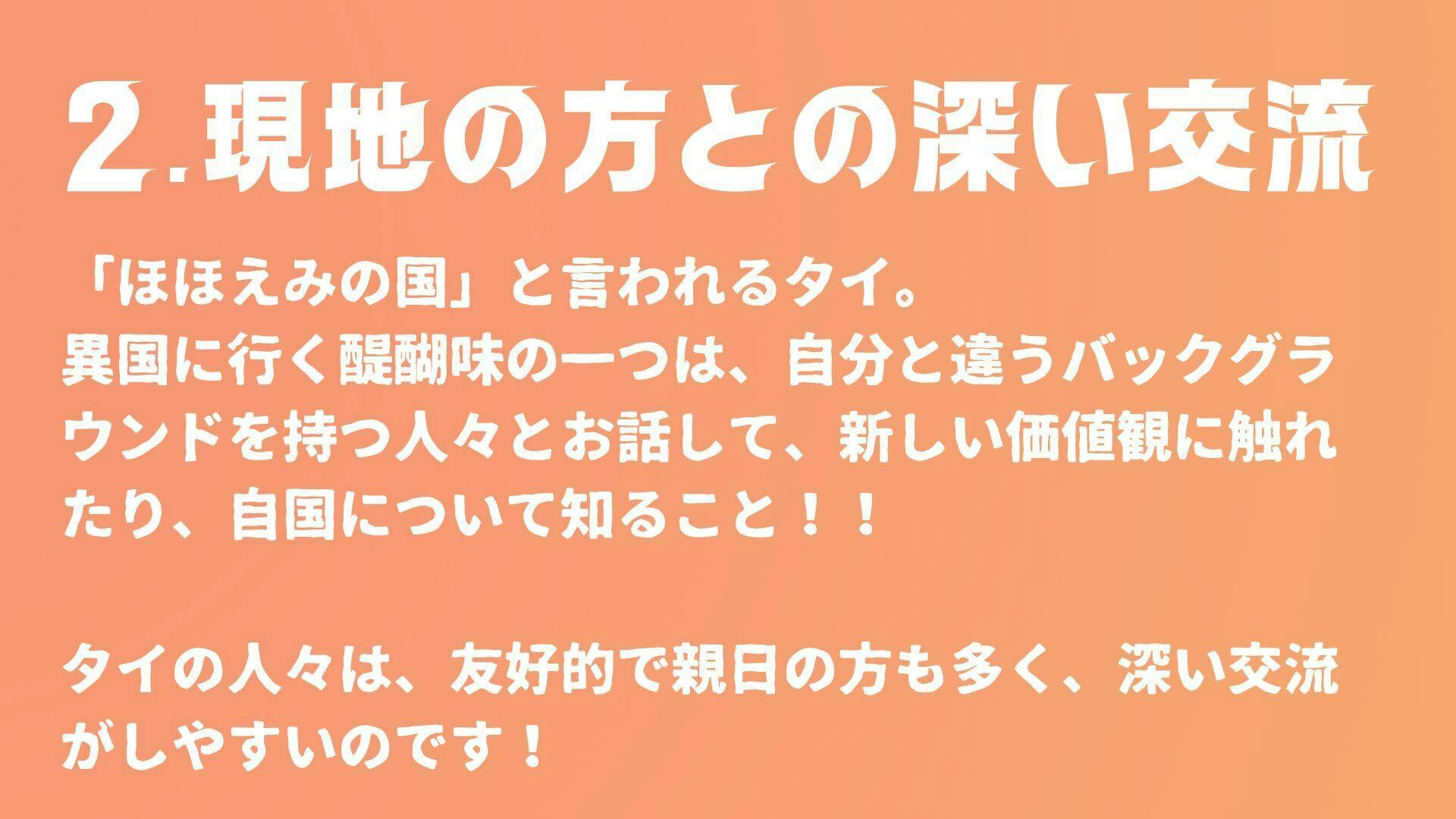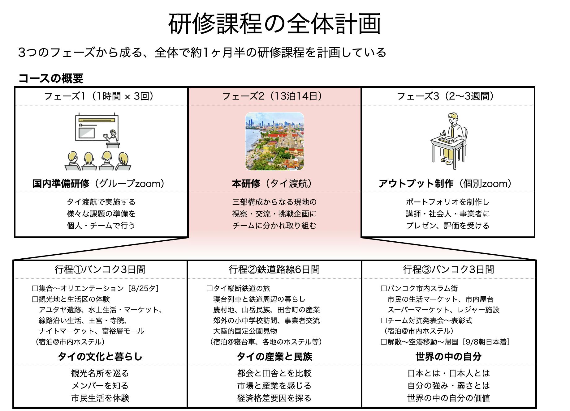 このタイ縦断研修に参加すれば、絶対に視野が広がり、自分自身への理解を深め、現代社会の中でも自分の選択肢を広げて「幸せ」に生きていくことができる。さらに一生ものの仲間もできる!そんな研修を企画しています。