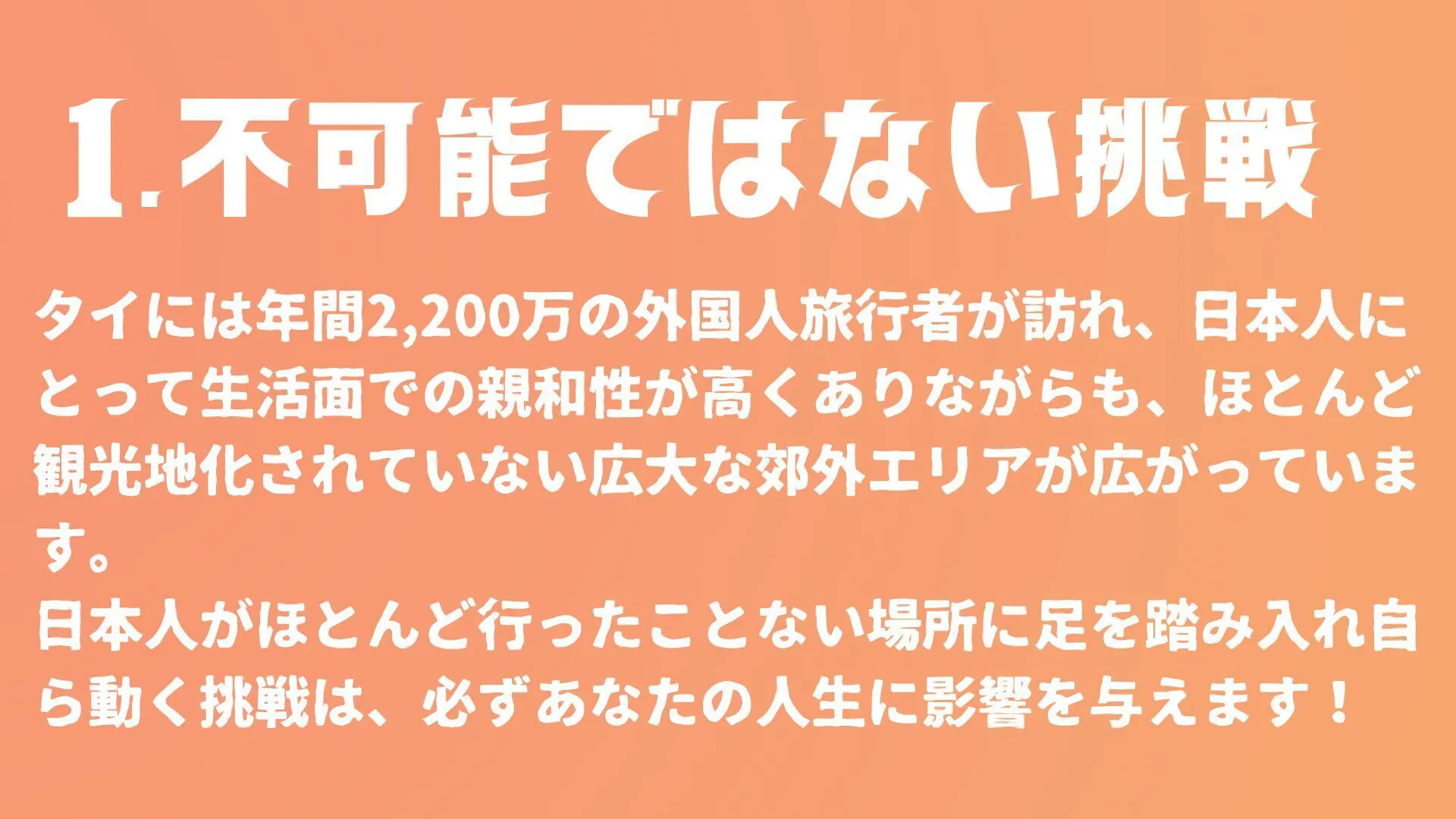 なぜタイなのか?