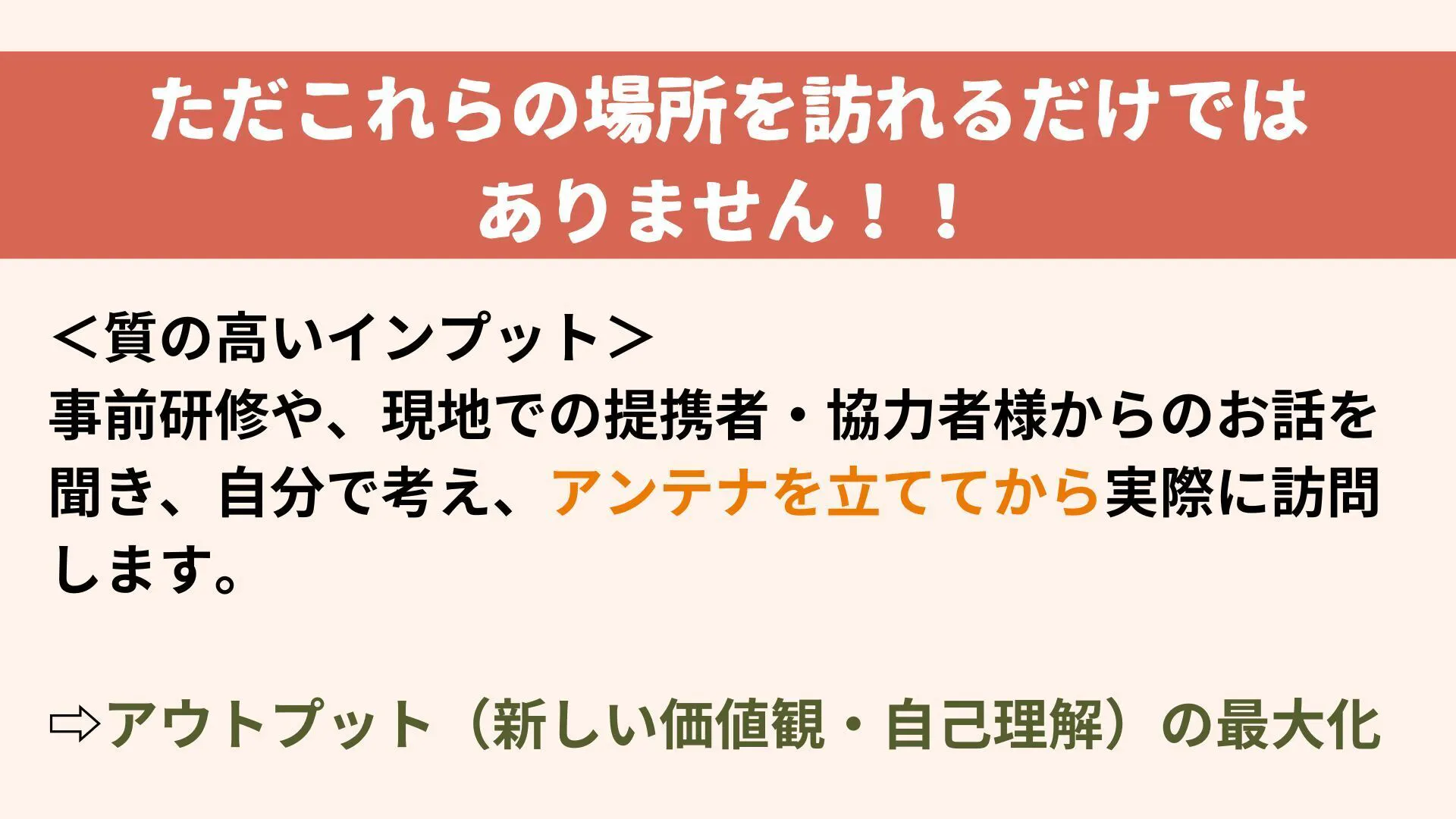 ですが、多くの大学生に、コロナに奪われた修学旅行を、価値観を変え、視野を広げ、自分自身を見つめ直すというものにグレードアップしてお届けしたい!!