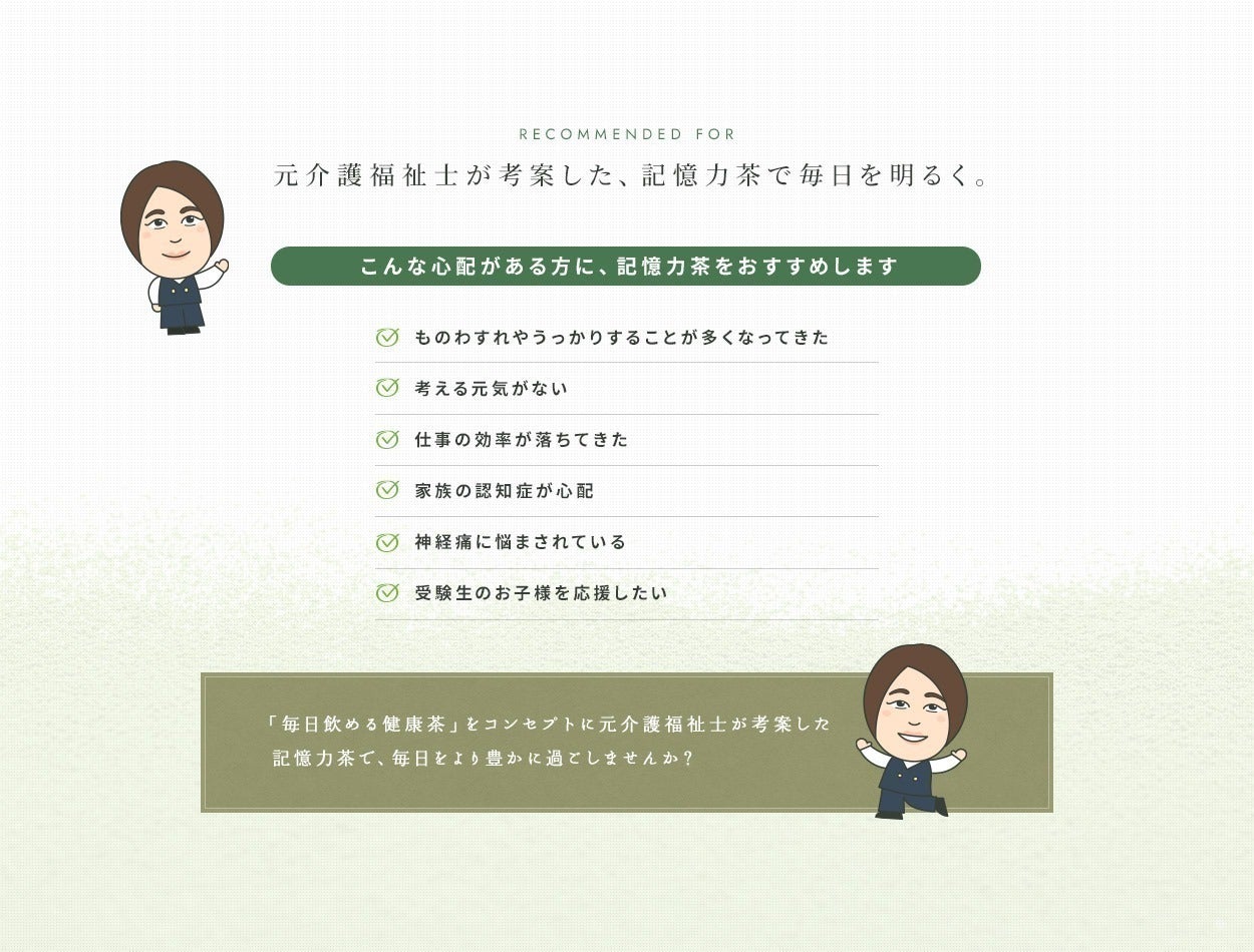明日の健康におともできる記憶力茶を、どうぞよろしくお願い申し上げます。