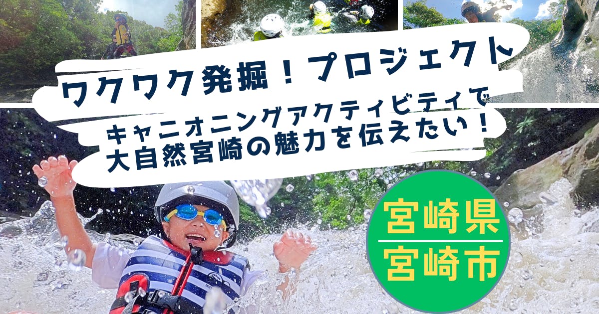 県外観光客だけでなく宮崎県民にも、もっと宮崎の魅力を知ってもらうそのきっかけとなれるよう、【ワクワク発掘!プロジェクトキャニオニングアクティビティで大自然宮崎の魅力を伝えたい】に挑戦します!