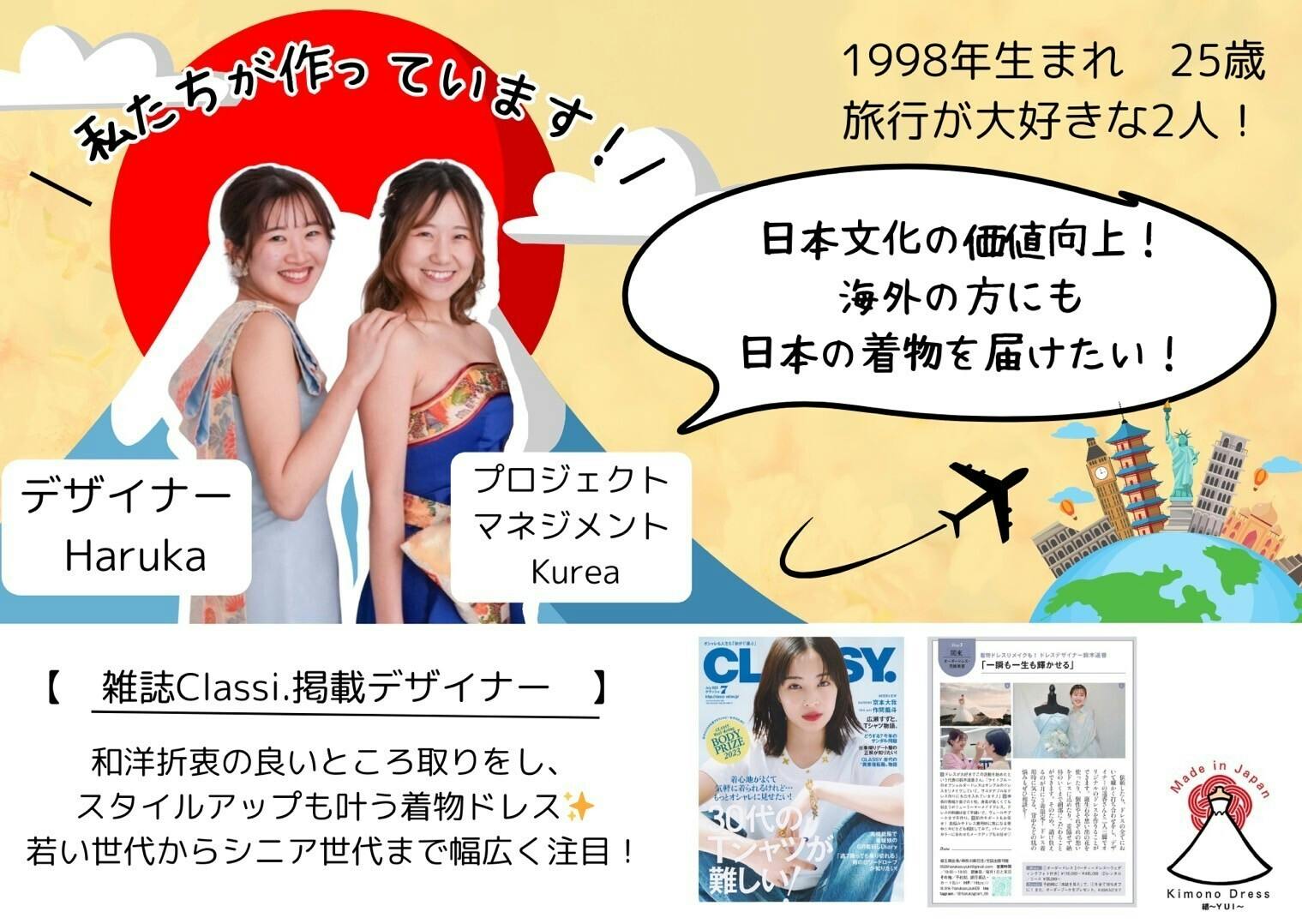 私たちの目標は、着物文化を世界に広め、日本の美しさを多くの人々に体験してもらうことです。着物ドレスを通じて、伝統と現代の融合を象徴し、新たなファッションの可能性を示したいと考えています。