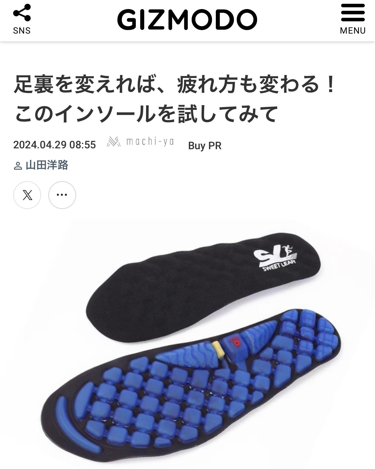 ご支援をいただいた皆様、こんにちは。先日に引き続き、実施中のプロジェクト商品のレビュー記事が、【GIZMODO】に公開中です。記事はこちら↓〜このインソールは、まるでエアマット!疲れやすかったスニーカーの履き心地が変わった〜https://www.gizmodo.jp/2024/04/machi-ya-airpumpinsole-review2-742764.htmlプロジェクトは残すところあと3日です。最後まで、ご声援よろしくお願いいたします。