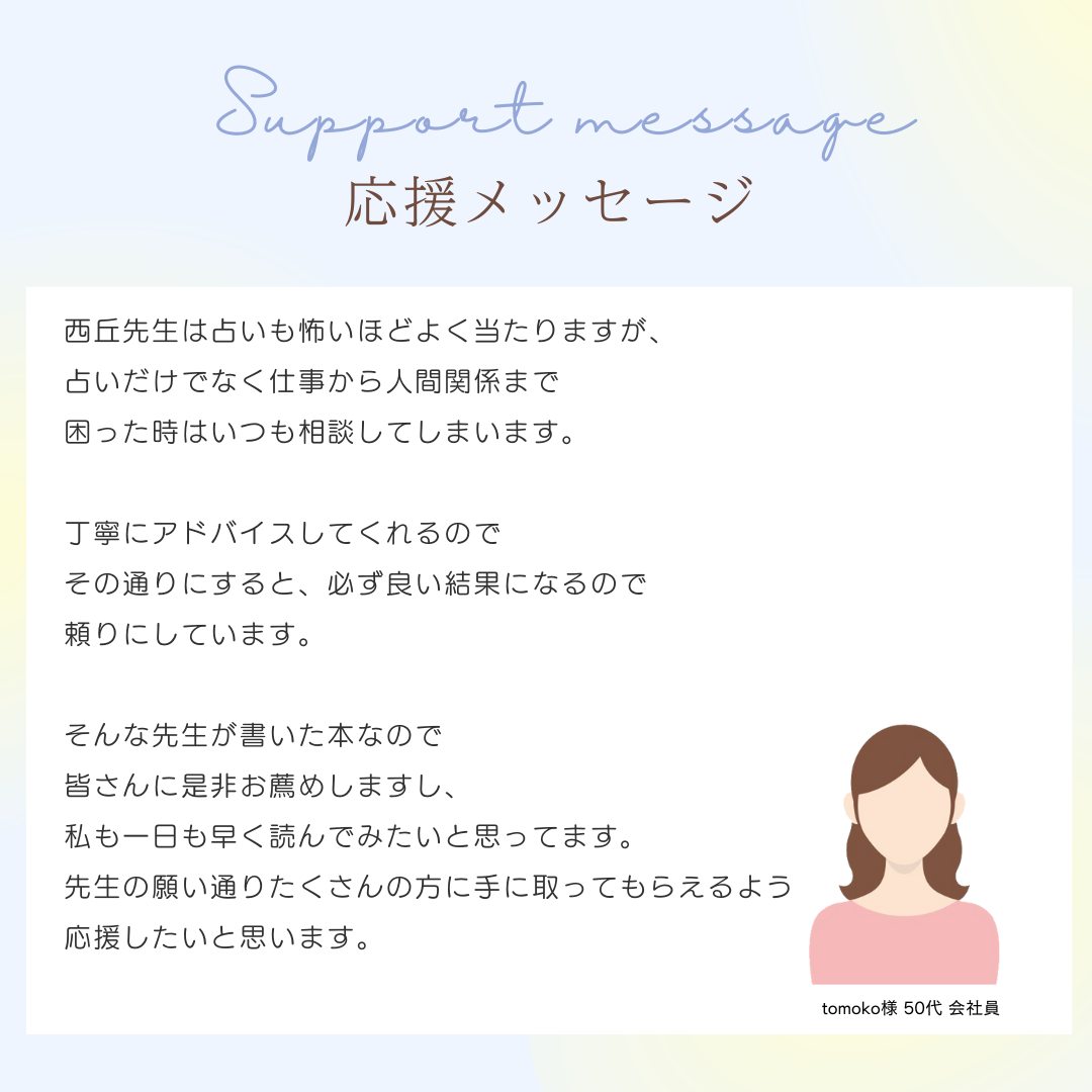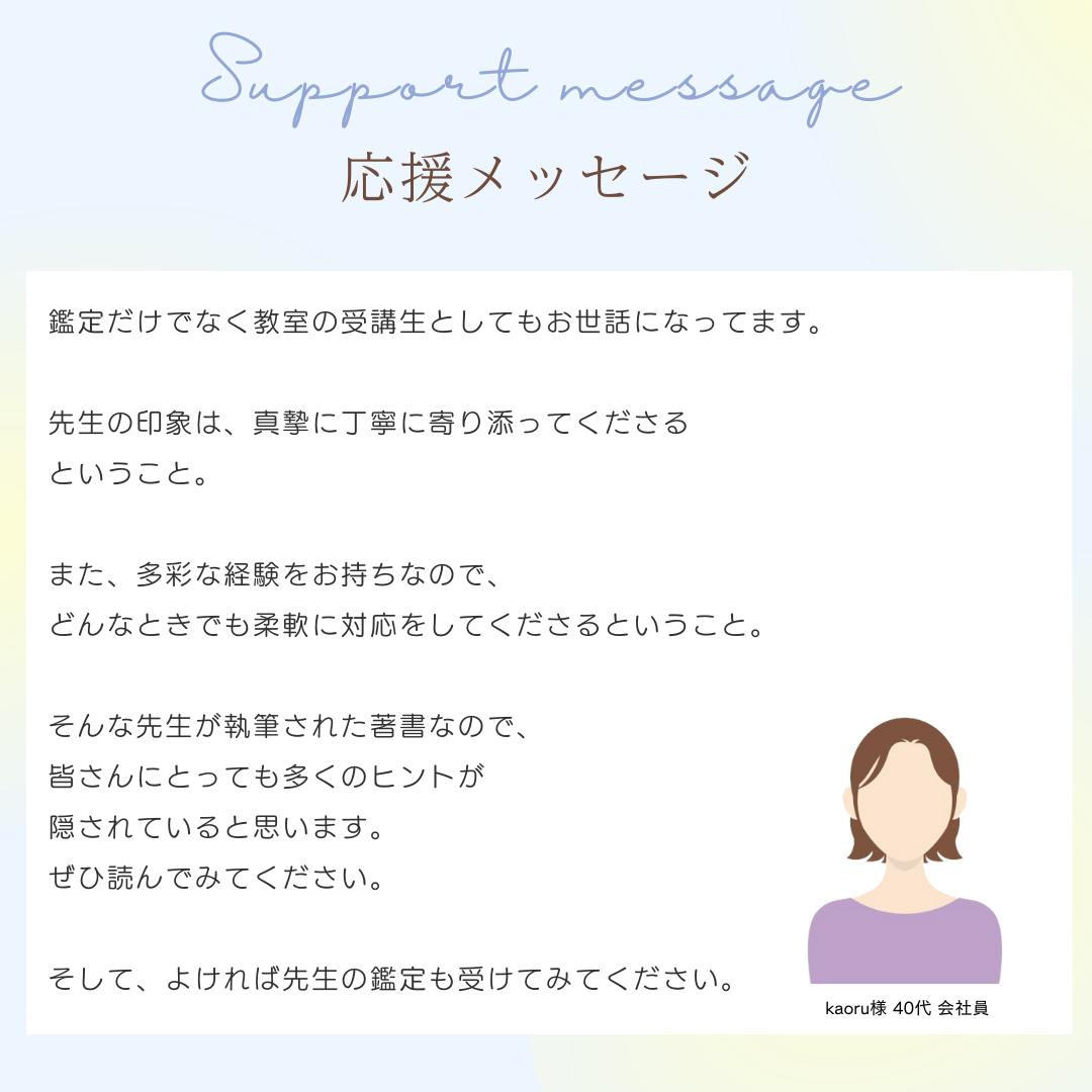 普段お会いすることがかなわないたくさんの方にも、私のお客様の様に笑顔になって頂くために、そして幸せを手に入れてもらうためにこの本を活用してほしい。これが一番の理由です。