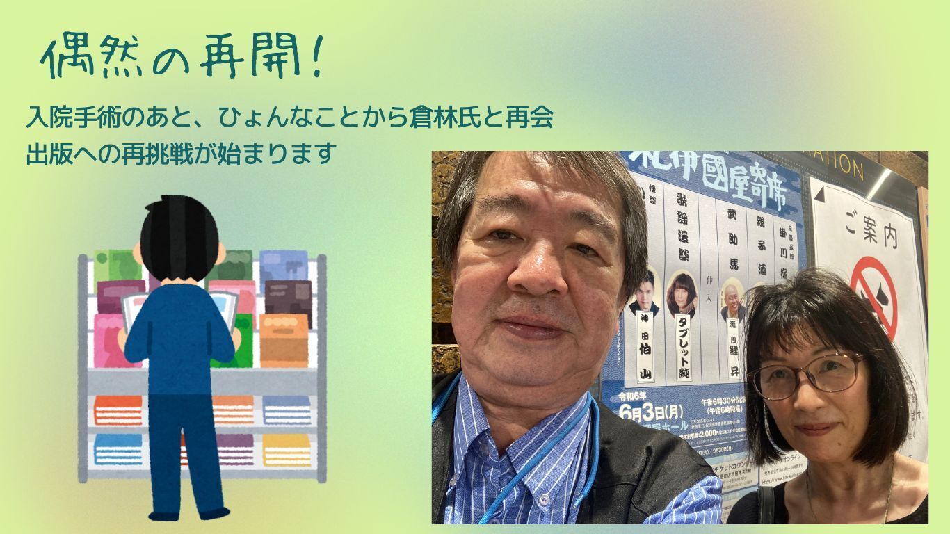 ところが当時、手術を終えて自分の体調は戻ったものの、家族の介護や看病が立て続けに始まり、出版について考える時間も余裕もなく(もう無理なのかな)と諦めかけていた時、ちょうどコロナ禍の2021年のこと。