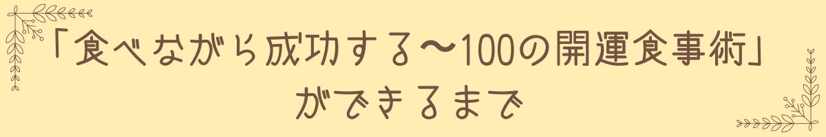 そして、その結果を毎日の食事に取り入れられるように具体的な事例を交え解説したのが「食べながら成功する〜100の開運食事術」です。