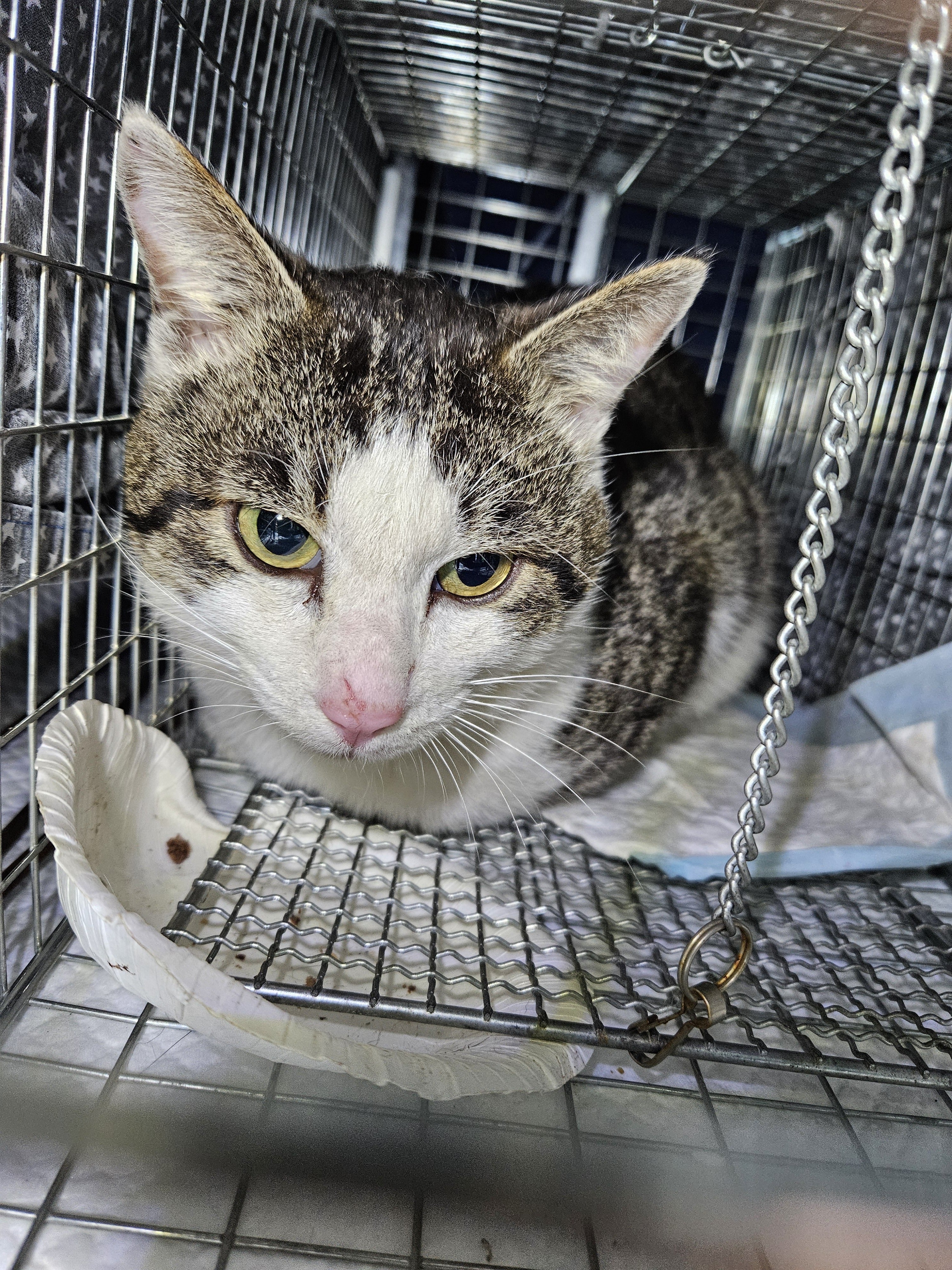 夕方、捕獲場所近くの解体現場より。解体した建物に母猫と子猫が住んでたそそうで、知らずに重機で作業し母猫、子猫の兄妹は亡くなったと..一匹だけ生きていたのを連れてこられました一匹だけ生き残るなんて幸運ですやはり繁殖制限は大切だと改めて思います