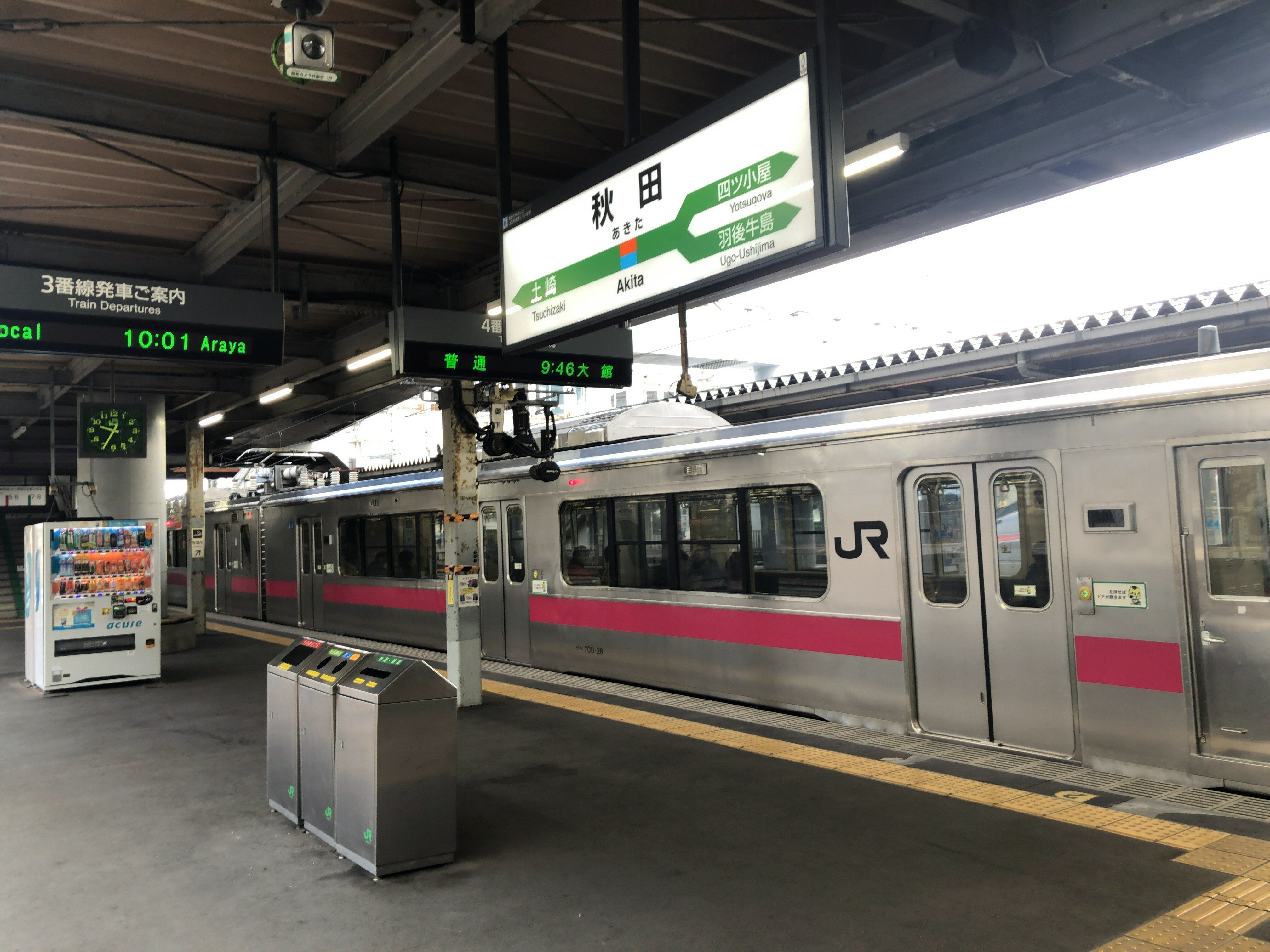 そして、16日(月)に、秋田駅から東能代駅へ、電車で1時間の移動です。