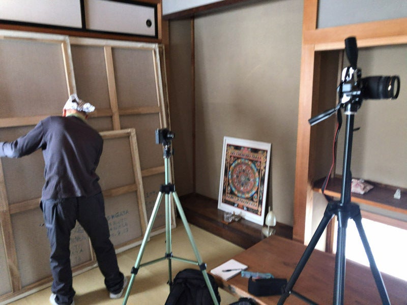私はカメラを三脚に設置して準備をし、金谷さんは作品を正面に掲げていきます。
