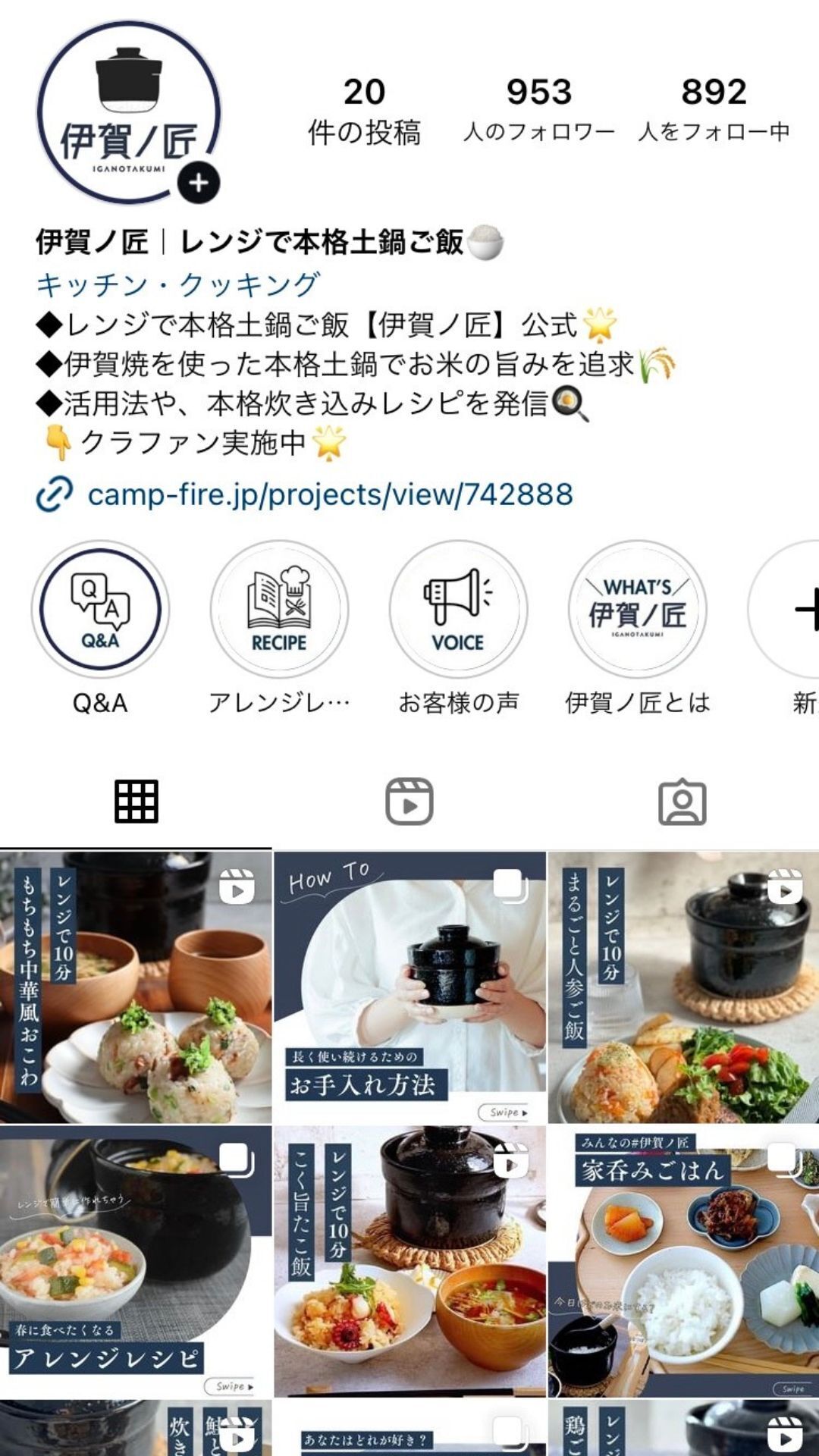 インスタグラムでは開発ストーリー、アレンジレシピ、お手入れ方法など伊賀ノ匠にまつわる色々な情報を発信しております。