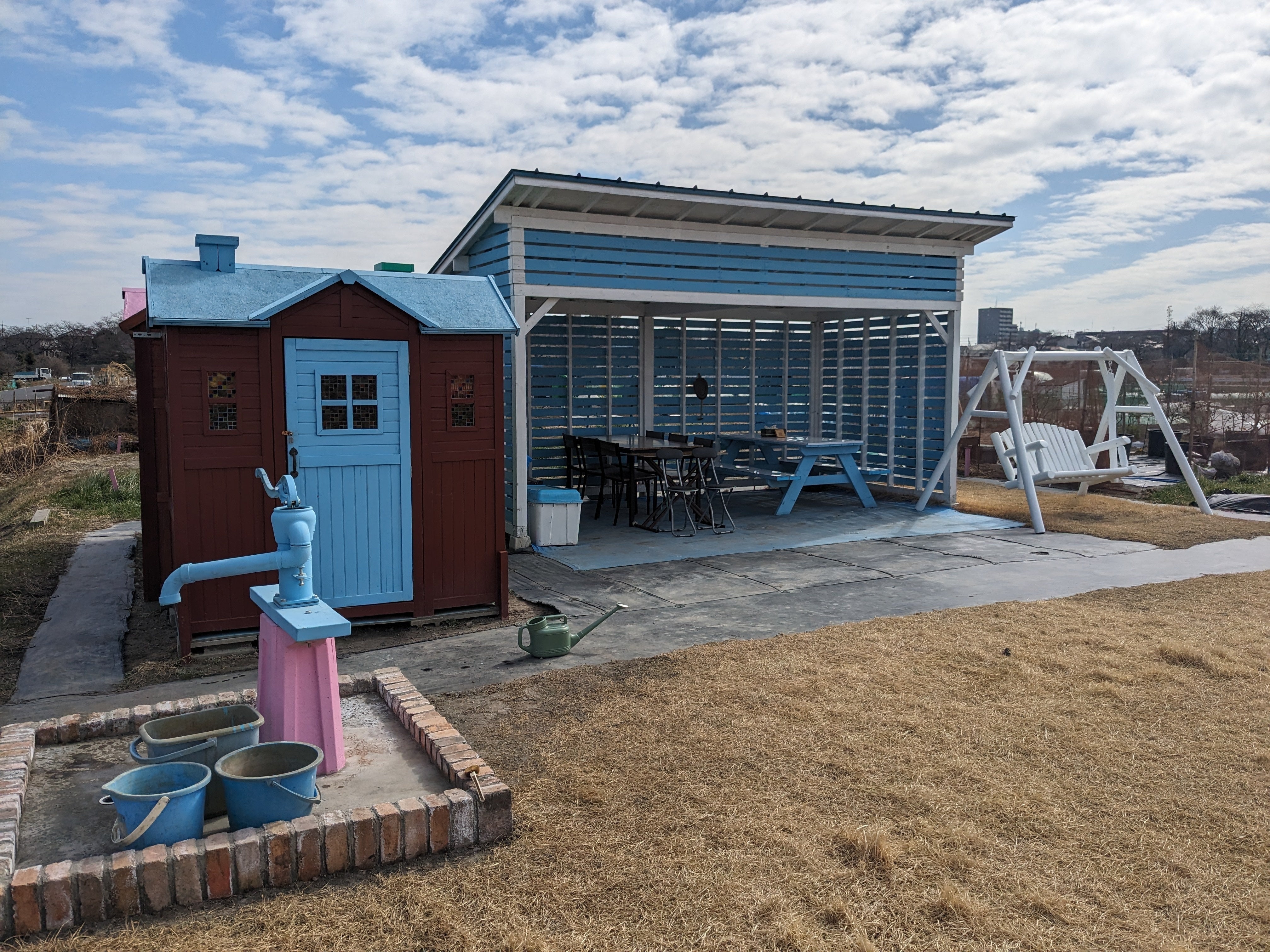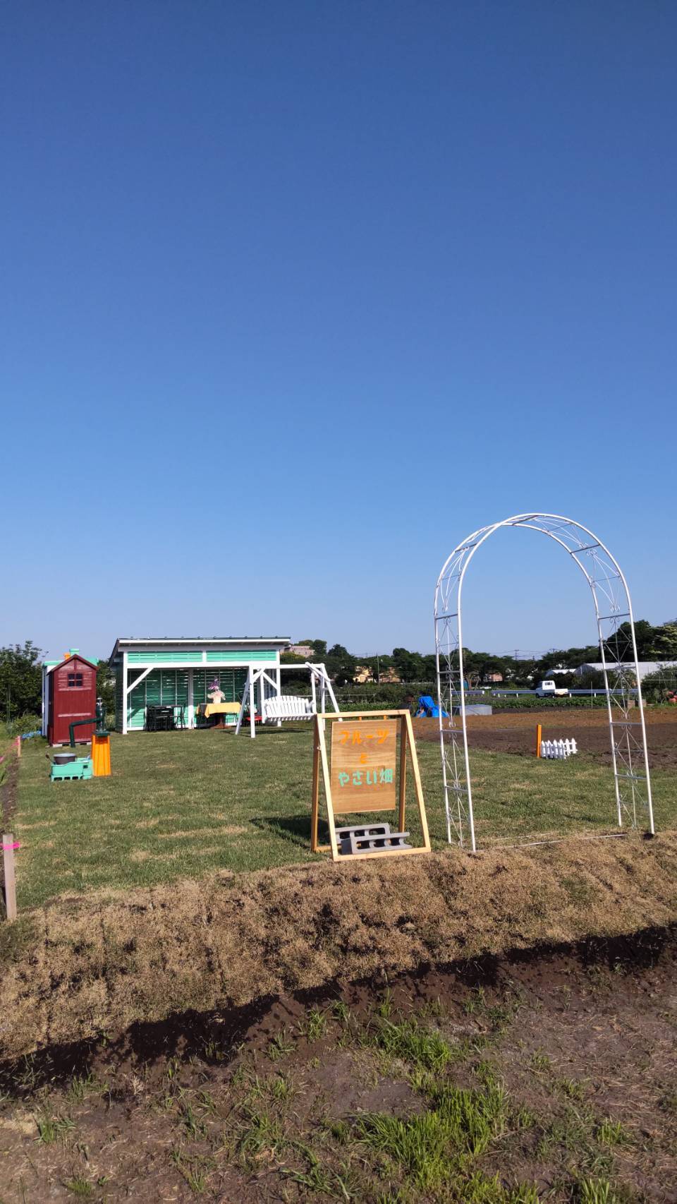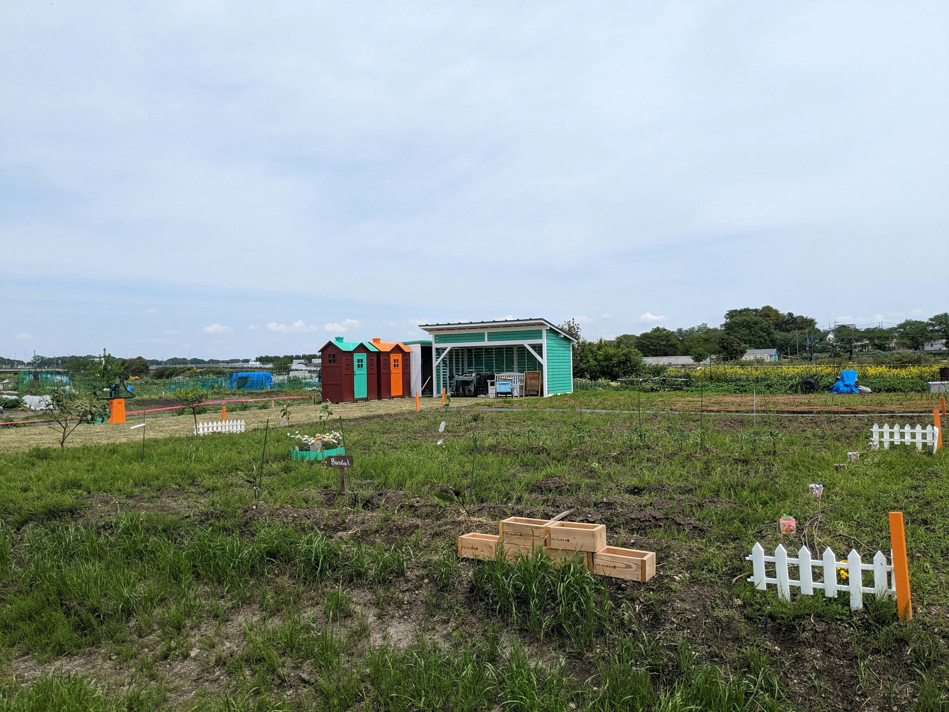 「花野菜農園」のバーゴラ、倉庫、井戸