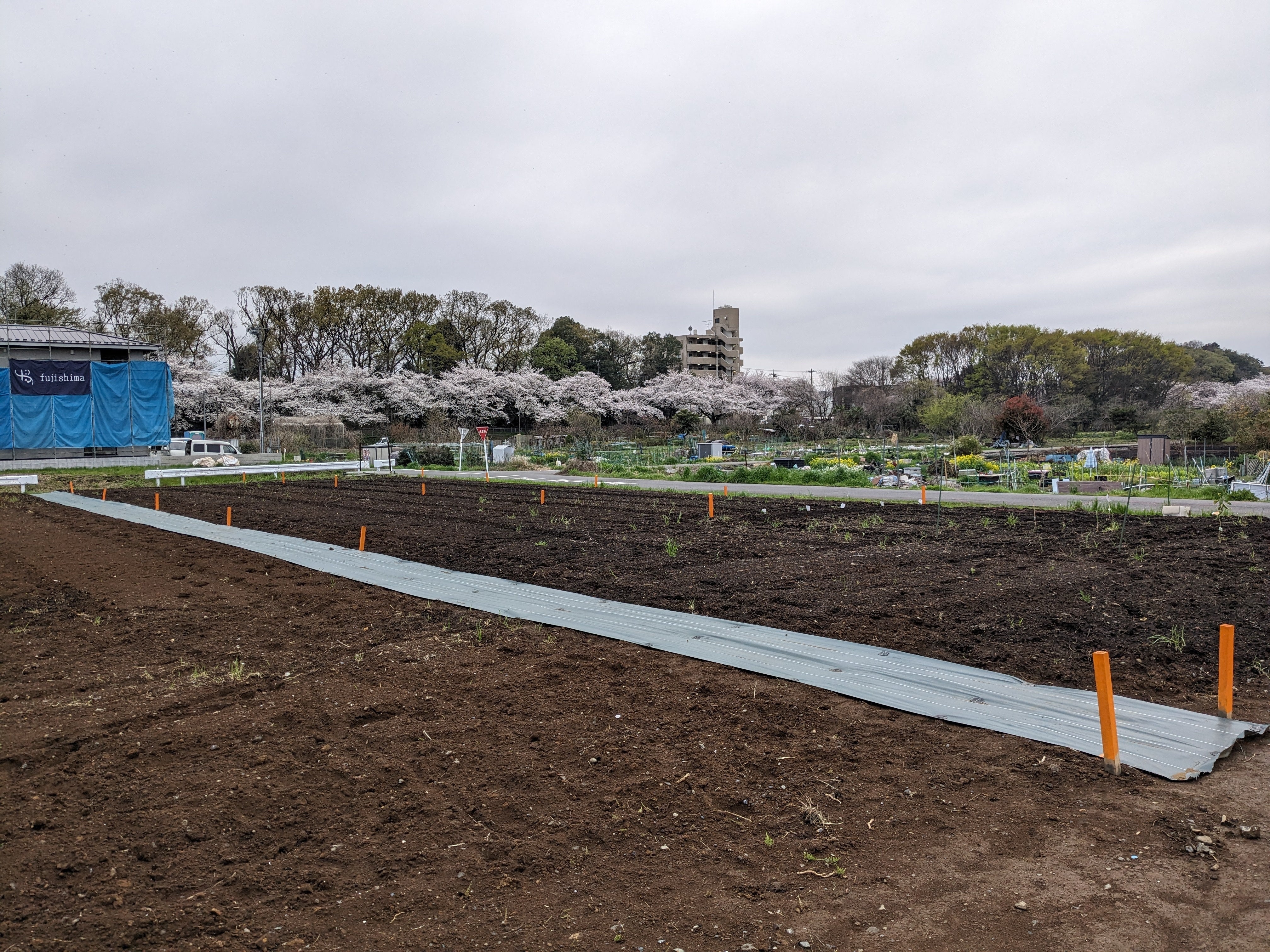 2024/04/07 23:05本日良い天気となり、桜並木も満開です。農園では場所割りのための杭を立て、果樹を植えられる農園らしくオレンジで塗装しております。果樹もシャインマスカットやレモンを植えて開園に向けて準備しております。 もっと見る