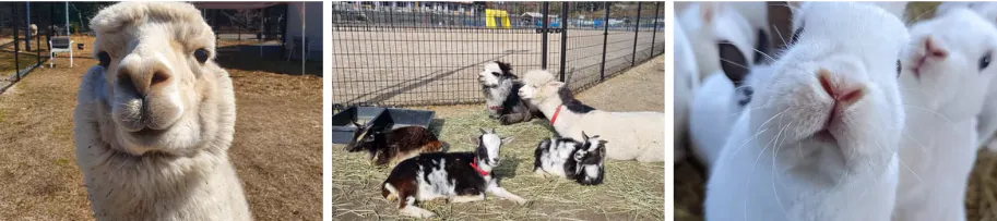 現在、元グラウンドだった場所を生かし大・中・小のドッグランと、アルパカ7頭・ヤギ3頭・うさぎ20羽・保護猫24匹・保護犬1匹・保護したうずら一羽がいます。