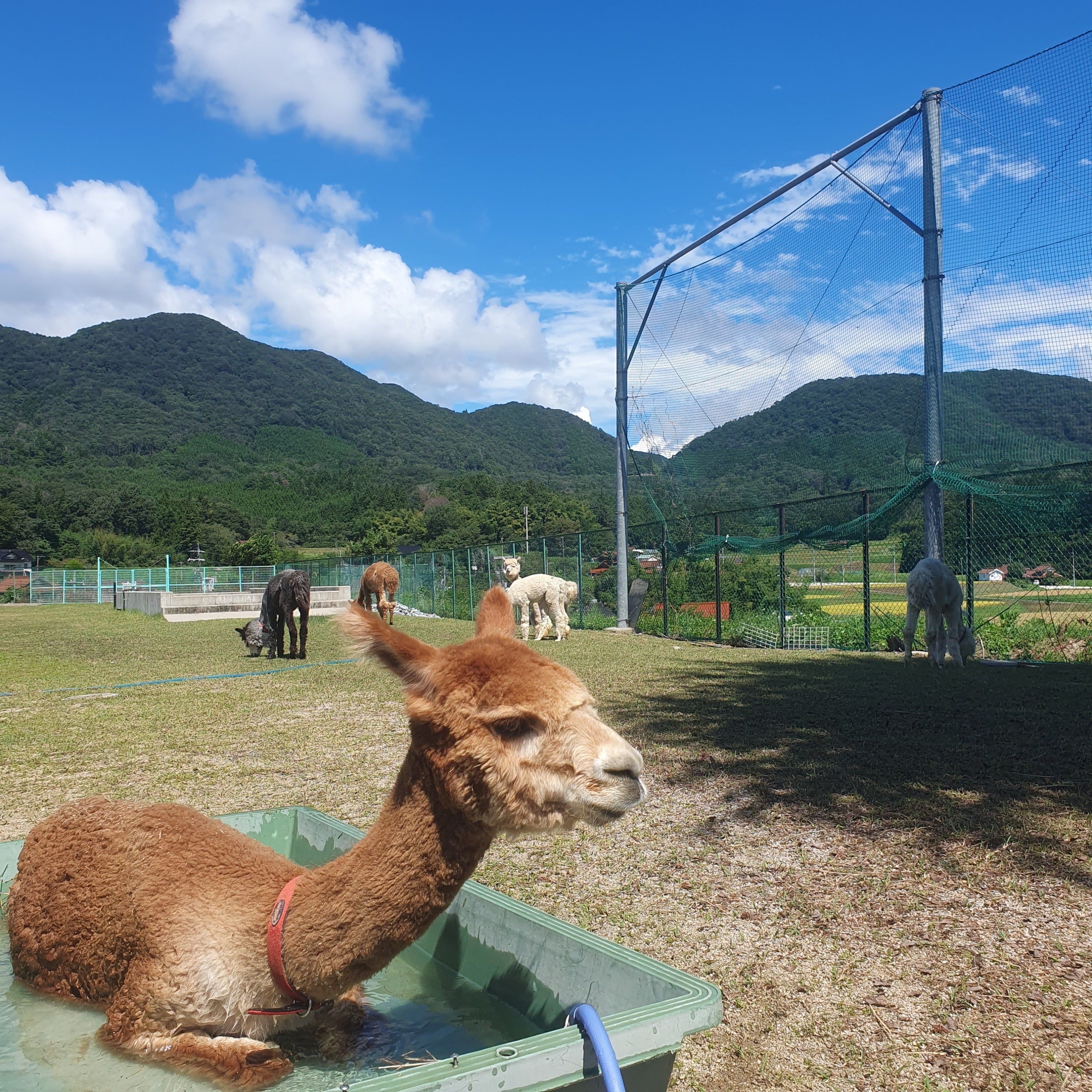 現在、元グラウンドだった場所を生かし大・中・小のドッグランと、アルパカ7頭・ヤギ3頭・うさぎ20羽・保護猫24匹・保護犬1匹・保護したうずら一羽がいます。