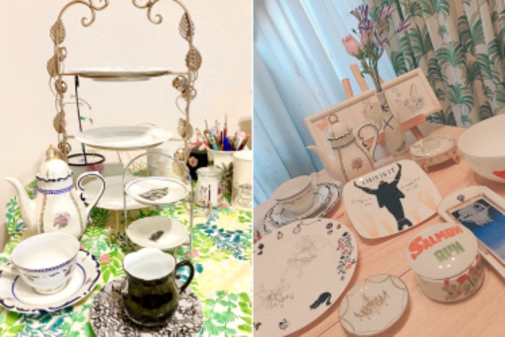 はじめまして。ポーセラーツという陶磁器に絵付けをしたり、それを教える教室(サロン)をしている「ろすろ」といいます。普段は磁器やガラスに絵付けをしていますが、いつも絵付けをして飾って終了のため有意義に活用できないかと考えました。