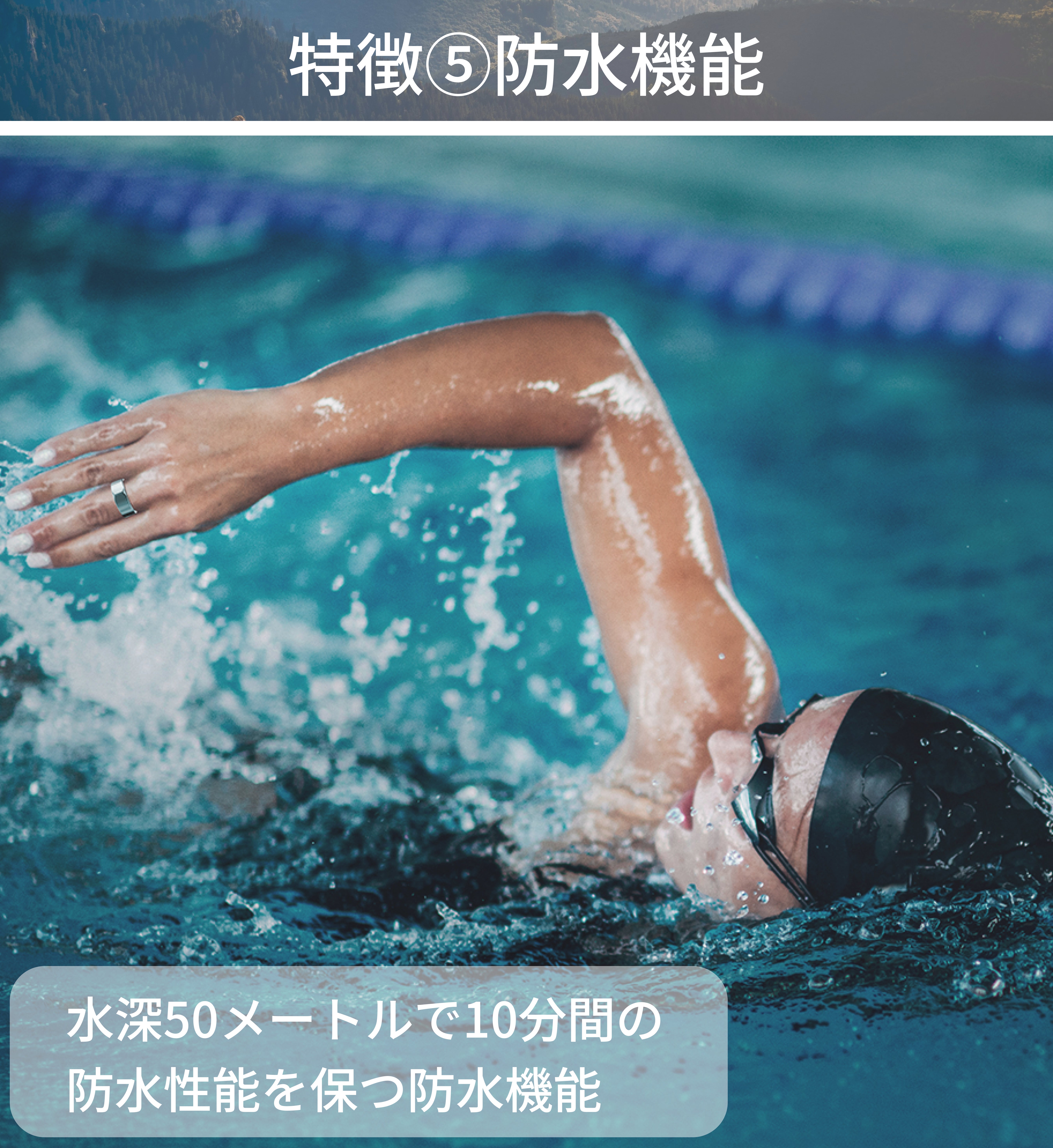 Patrus Ringは、水深50メートルでの最大10分間の防水性能を誇ります。