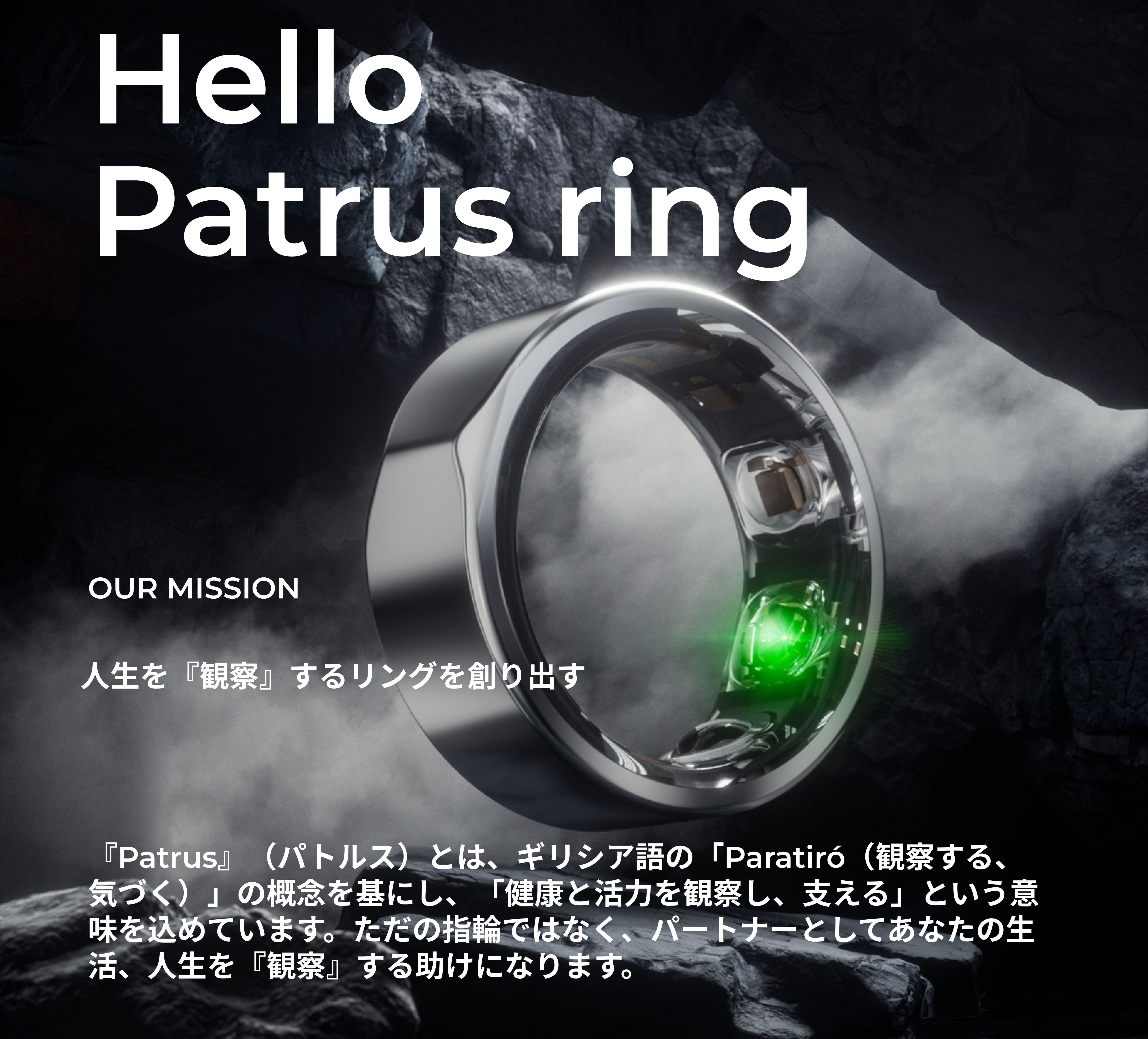 こうして生まれたのがPatrus Ringです。ギリシア語で「観察」という意味を持つ「Paratiró」の概念を基にし、「健康と活力を支える」という意味を込めています。このスマートリングは睡眠をはじめとする日々の生活をモニタリングし、あなたの心身の健康を守るパートナーとなるでしょう。