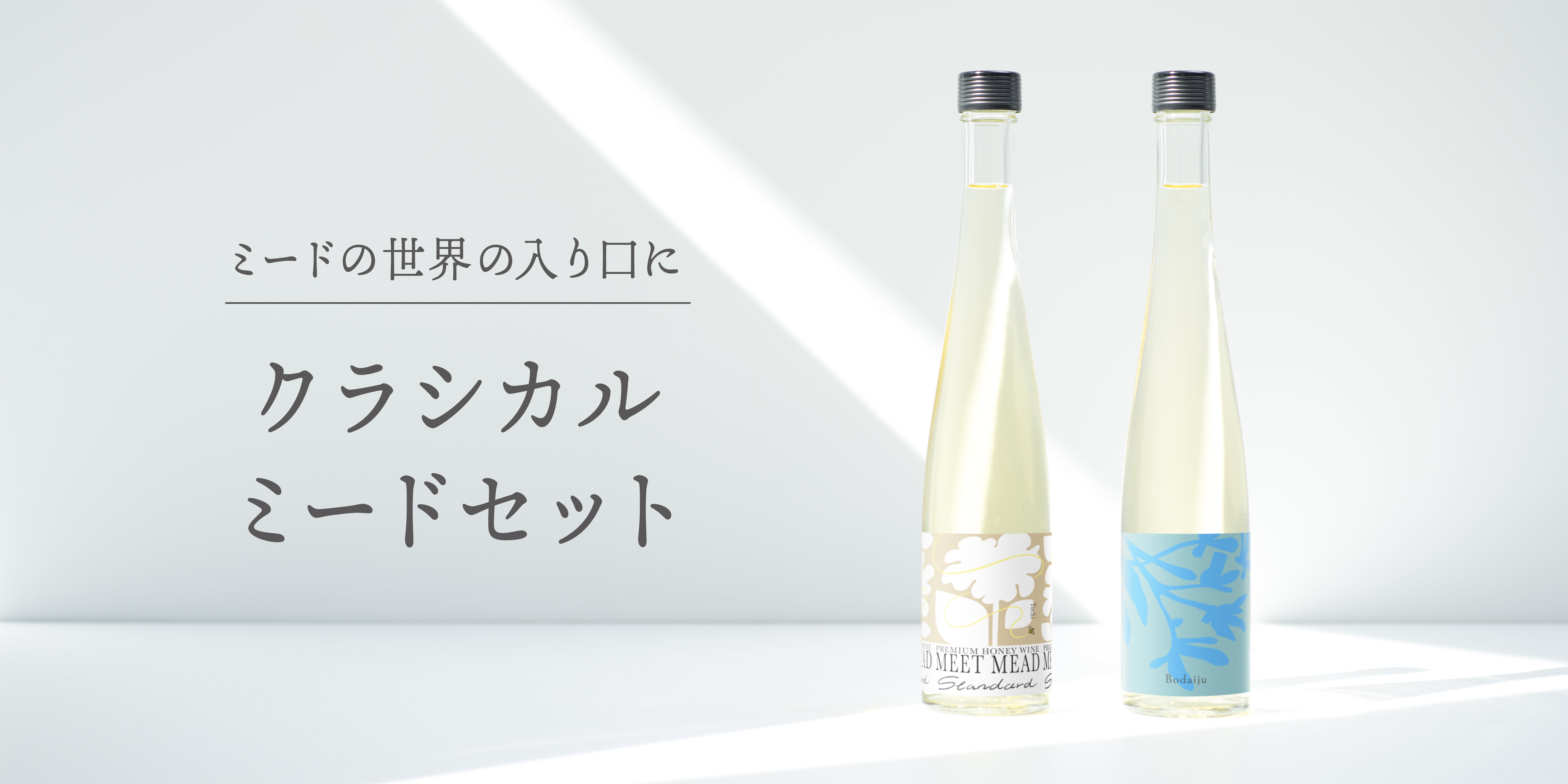 食事に合わせて楽しみたいミードのセット。同じ栃の蜜を使いながらも違った味わいをお楽しみください。