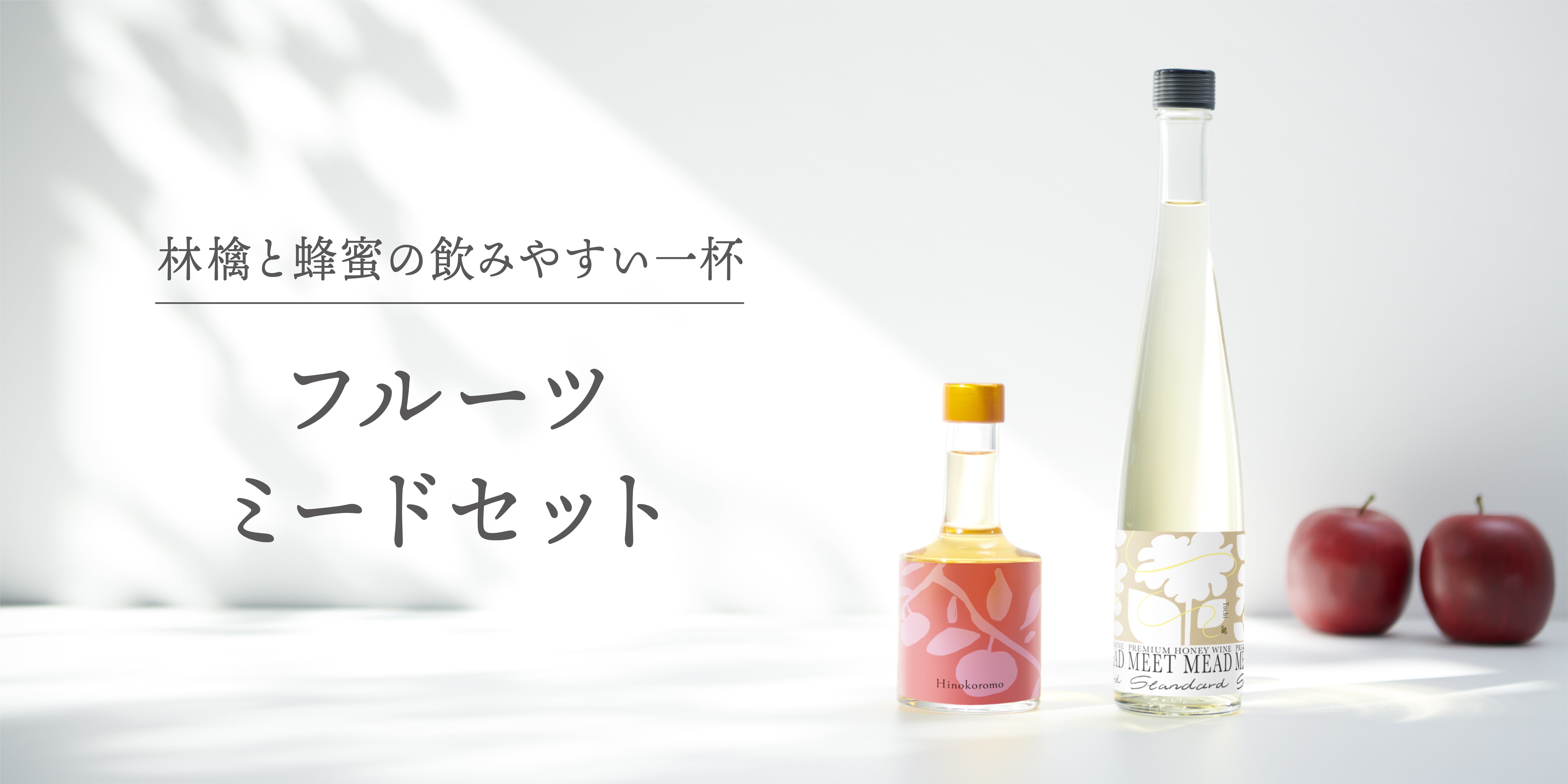 リンゴの蜂蜜とリンゴ果汁を使った限定ミード「ひのころも」をセットに。フルーティーな新しいミードをお楽しみください。